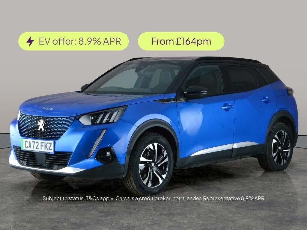 Experience the stylish Peugeot E-2008 GT in striking blue. Enjoy the comfort of heated seats and the convenience of a wireless charger. Stay connected with Apple CarPlay and built-in sat nav, while LED headlights and a reversing camera add confidence to your drive. Safety takes priority with Active Lane Assist, Blind Spot Assist, and Traffic Sign Recognition. Bluetooth and air conditioning keep every journey connected and comfortable in this dynamic electric SUV. 1 service recorded, last serviced on 15/02/2026 at 38,506 miles. MOT to 29/09/2026. Visit our website for service history, online valuation, full vehicle specification plus multiple images. This vehicle is VAT qualifying. Any feature/option specified here is from 3rd party data. We cannot guarantee the accuracy of any specification supplied by a 3rd party. We recommend that you physically check the specification of the vehicle on site prior to purchase. This information does not form part of the buying contract. Terms & Conditions apply. We have over 2,000 cars available from our 10 national branches, check our website to see all our stock. Our Trustpilot rating is 4.4/5 with over 9,000 reviews.