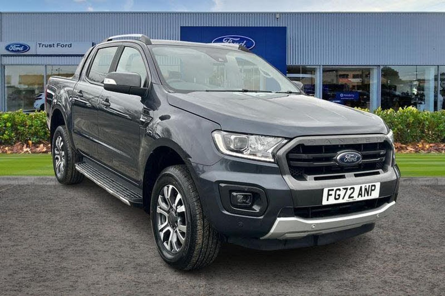 REAR VIEW CAMERA shows whats behind you on a screen in front of you on the dashboard - the system activates when you select reverse gear and using virtual guidelines can help you park, REAR PARKING SENSORS are designed to help you park more confidently helping you judge the distance between your vehicle and obstacles, QUICKCLEAR HEATED WINDSCREEN uses ultra thin filaments that superheat to de-ice and de-mist your windscreen as well as help de-freeze the wipers and works in seconds, LANE KEEPING AID uses forward looking cameras to detect if youre unintentionally drifting out of a lane - Lane keeping alert then warns you and if you dont respond the vehicle provides steering torque assistance to help guide you safely back into the right lane, DUAL ZONE CLIMATE CONTROL Automatically set your ideal air temperature humidity volume and distribution levels and adjust separately for you and your front passengers , TRAFFIC SIGN RECOGNITION - is designed to detect road signs whether permanent or temporary located at the side or above the road It then displays the signs information including speed limits on your instrument cluster, CRUISE CONTROL provides extra comfort on longer journeys allowing you take your foot off the acceleration whilst just focusing on steering the vehicle, HILL START ASSIST temporarily stops you rolling backwards or forwards when making a hill start - maintaining pressure to the braking system for an extra 25 seconds giving you more time and control as you move your foot from the brake to the accelerator, Immobiliser, Roof rails, Engine start/stop system, Rear mudflaps, Privacy glass, BLUETOOTH HANDS FREE WITH VOICE CONTROL allows you to operate both your mobile phone and Ford audio system - controlling several functions using a set list of simple voice commands, Underbody protection, Trip computer, Reach and rake adjustable steering column, Leather gearknob, Tie down rails and rope hooks, Automatic headlights, Locking wheel nuts, Spare wheel lock, Rear bumper chrome under-bar, Electrochromic interior mirror, Daytime running lights, Under hood engine cover, Centre console coolbox, Seatbelt reminders for driver and front passenger, Tyre pressure sensors, Emergency brake assist, Collision mitigation braking system, Traffic sign recognition, Chrome interior door handle, Passive anti theft system, Electrically operated windows with one shot driver's window, Heated windshield and rear window, Rain sensitive windshield wipers, ABS, ESP and roll over mitigation, Premium front and rear floor mats with Wildtrak logo, Locking rear axle, Electric power assisted steering, Intelligent speed assistant, 2 key fob, Lane keeping aid, Boulder grey exterior door mirror, Boulder grey exterior door handle, Dual power heated fold back door mirror with puddle lamp and signal, Power converter, Body coloured plastic front bumper, Moulded in colour tailgate handle, Painted front fender grille, Rear bumper step in boulder grey, Front splash guard and mud flaps, Side step with brushed inserts, Tailgate - Easy-lift/lower mechanism, LED Front fog lamp, Dual control system - Electronic air temperature control (EATC), Wildtrak door trim panel insert, Sport leather stitched steering wheel, Roof storage for driver sunglasses, LED ambient interior lighting, ICE feature pack 129 - Ranger, 3 point inertia rear seatbelts, Driver and front passenger airbag, side airbag, curtain airbag and driver knee airbag, ISOFIX child safety seat attachment, Driver seat back mounted map pocket, Heated front seat, Power adjustable 8 way driver seat, Passive keyless entry and start system, Power tailgate lock, Double locking power door lock with flip key, Boulder grey radiator grille, High mounted stop lamp with cargo area light, Ebony headliner, Journey grain partial leather upholstery with Wildtrak logo, Thatcham category 1 alarm security system, Fixed rear view camera, Sports bar, LED projector headlamps, 4X4, AIR CONDITIONING, ULEZ, ULEZ COMPLIANT, NATIONWID