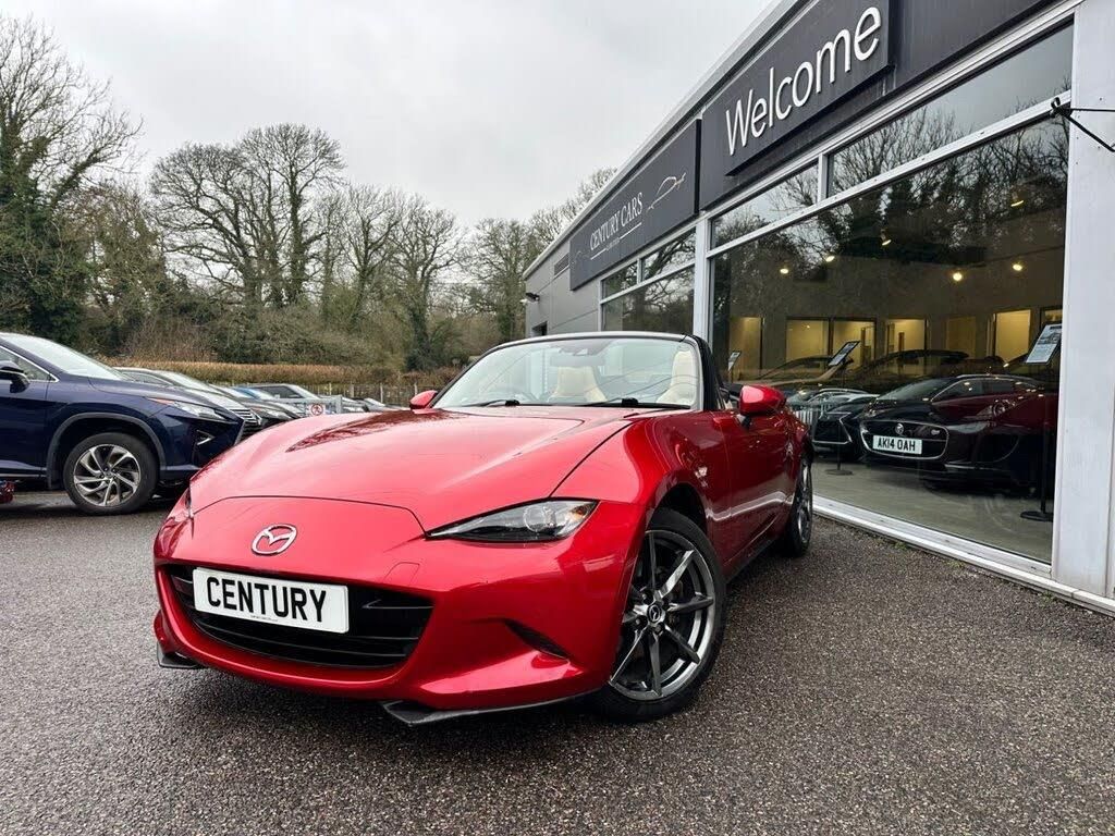 Leather - Sand with Sand Stitching, Soul Red, 17in Alloy Wheels - Bright Finish, 7in Colour Touch Screen Display, Adjustable Speed Limiter, Aha App and Stitcher App Integration, Air Conditioning - Climate Control, Air Conditioning Dials - Chrome, Air Vent Surrounds - Chrome, Analogue Speedometer, Audio Transfer from Bluetooth Devices, Auto Dimming Rear View Mirror, Automatic Passenger Airbag Deactivation System, Auxiliary - AUX - and Two USB Input, Body Coloured Door Mirrors, Chrome Meter Rings, Coinbox, Convertible Top - Premium Cloth Soft Top with Heated Rear Window - Manually Operated, Cruise Control with Manual Speed Adjustment, Cupholder - Front x2, DHS - Deployable Hood System, Double Pinion Electric Power Assisted Steering - DP-EPAS, Driver and Passenger Front Airbags, Dual Exhaust System, Dusk Sensing Automatic Headlights, Dynamic Stability Control - DSC - with Traction Control System - TCS, Electric Windows - One Touch Auto Down, Electrically Adjustable-Heated Door Mirrors, Emergency Tyre Repair Kit, Engine Start-Stop Button, Fashion Bar Cladding, Four-Wheel Anti-Lock Braking System - 4W-ABS with Electronic Brake-Force Distribution - EBD, Fuel Filler Lid - Body Colour, Gear Knob - Leather with Chrome Surround, Gear Shift Indicator, Handbrake - Leather Wrapped, Headlights - Adaptive Front Lighting System, Headlights - Coming-Leaving Home, Headlights - LED with Auto Headlight Levelling, Heated Seats, Hill Hold Assist, ISOFIX Child Seat Anchorage - Passenger Seat, Inner Door Handles - Chrome, Integrated Bluetooth, Interior Courtesy Light, Interior Upper Door Trim - Body Coloured, LED Daytime Running Lights, LSD - Limited Slip Differential, Lane Departure Warning System, Multimedia Commander, Multimedia System, Rain-Sensing Front Wipers, Rear Brake Light - High Mounted, Rear Parking Sensors, Remote Central Locking with Deadlocking and Remote Boot Release, SKYACTIV-Body Engineered Triple H Body Structure to Help Protect Occupants from Impact Forces, SRS - Supplementary Restraint System, Satellite Navigation System, Seatbelts - 3 Point - ELR - 2x with Pre-Tensioners, Seatbelts - Reminder Screen with Audible Warning, Seats - Drivers Manual Slide-Recline and Tilt Adjustment, Seats - Front Passenger Manual Slide and Recline Adjustment, Side Airbags, Side Door Trim - Black with Red Stitching, Smart Keyless Entry, Sports Suspension, Steering Wheel - Leather with Chrome Bezel, Steering Wheel - Mounted Audio and Bluetooth Controls, Steering Wheel - Tilt Adjustment, Storage - Rear Centre Box with Lockable Lid, Sunvisors - Drivers and Passengers with Covered Vanity Mirror-Ticket Holder, Thatcham Category 1 Alarm and Immobiliser, Trip Computer, Tyre Pressure Monitoring System, USB - iPod Connectivity, Windblocker