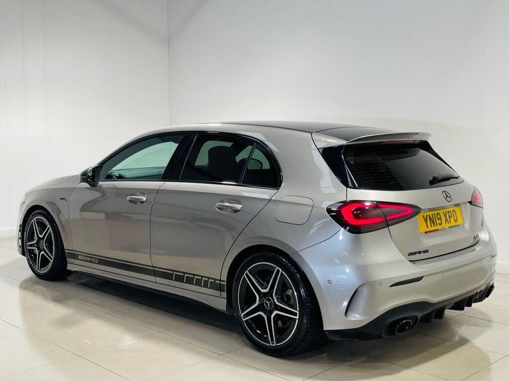 Mercedes-Benz A-Class 2.0 A35 AMG (Executive) Hatchback 5dr Petrol SpdS DCT 4MATIC Euro 6 (s/s) (306 ps) Reg: YN19 XPD | Mileage: 72,000 miles | Colour: Mojave Silver Overview A properly specified A35 AMG Executive finished in stunning Mojave Silver, complemented perfectly by the Black Styling Pack and Panamericana grille. Powered by the punchy 306ps 2.0 turbo petrol engine, paired with the lightning-fast AMG Speedshift DCT and 4MATIC all-wheel drive, this is a serious performance hatch with everyday usability The Mojave Silver against the black styling and privacy glass gives this car a real presence — subtle but aggressive in the right way Key Features AMG A35 – 306ps Turbocharged Engine AMG Speedshift DCT Automatic 4MATIC All-Wheel Drive Executive Package Black Styling Pack Panamerica Grille Privacy Glass Euro 6 (ULEZ Compliant) Stop/Start Additional Information 128 Point Inspection Passed Service History ULEZ: Yes – Euro 6 compliant Road Tax: Post-2017 flat rate system Summary A sharp-looking, properly specced A35 AMG Executive in the right colour combination. 306ps, 4MATIC traction and that Panamericana front end make this a serious hot hatch with year-round usability