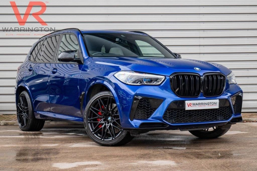 Here at VR EPS Warrington, we are pleased to offer this stunning 2021 - 71 plate - BMW X5 M 4.4i V8 Competition SUV 5dr Petrol Auto xDrive finished in Marina Bay Blue with Carbon Fibre and Silverstone Leather Interior. First registered in October 2021, this vehicle has 2 previous owners and comes with... New Discs and Pads which have just been fitted | Apple CarPlay | Android Auto | BMW Lazerlights | 360º Camera with Sensors | Electronic Sunroof | Harman/Kardon Sound System | Bluetooth Connectivity | Front Heated and Vented Electronic Massage Memory Seats | Rear Heated Seats | X5 M Lights in Seat Headrests | Alcantara Headlining | Satellite Navigation | Wireless Mobile Phone Charging | Adaptive Cruise Control | Lane Keep Assist | Blind Spot Monitoring | Voice Control | Heated Steering Wheel | Keyless Entry | Dual-Zone Climate Control | Black Painted Aluminium Roof Rails | Privacy Glass | Heated Electronic Folding Mirrors | Automatic Headlights | Front Fog Lights | Daytime Running Lights | Rear Spoiler | Ambient Lighting | ISOFIX | 21" Alloys in Black | Also boasting all BMW service history which has been completed at the following dates and mileages... 10/07/2025 - 47358 miles. 04/10/2024 - 36108 miles. 02/02/2024 - 20195 miles. 03/11/2021 - 2210 miles. At VR EPS Warrington you can enjoy a buying experience like no other! You can either... Visit our Boutique showroom in Warrington Cheshire or order directly through our website and arrange delivery to your door. Or as most of our customers have done… Do both!! Our talented team of advisors are available to provide their knowledge and match you to your dream car. All our cars are supplied with two keys, an 82-point vehicle inspection, 6 months fully comprehensive RAC Warranty, and 12 months RAC roadside assistance. 10.4%APR AVAILABLE ON THIS CAR. 21in-22in Alloy Wheels - M Light 818 Bi-Colour with Mixed Tyres,32GB Hard Disc Drive HDD Memory,Active M Differential,Active Protection,Adaptive M Suspension Professional,Air Conditioning - Automatic with Four Zone Control,Airbags,Alarm System,Ambient Lighting,Attentiveness Assistant,Automatic Start-Stop Button,Automatically Dimming Rear View Mirror,BMW Connected Package Professional,BMW ConnectedDrive Online Services,BMW Gesture Control,BMW Individual Headliner Alcantara Anthracite,BMW Individual High-Gloss Shadowline,BMW Individual High-Gloss Shadowline with Extended Contents,BMW Individual Instrument Panel Finished in Leather,BMW Individual Roof Rails High-Gloss Shadow Line,BMW Legal Emergency Call,BMW Live Cockpit Professional,BMW TeleServices,Brake Pad Wear Indicator,Brake System,Bumper System,Centre Lock Switch - Driver and Front Passenger Door,Child Seat ISOFIX Attachment - Outer Rear Seats - includes Top Tether,Closing System with Central Locking,Comfort Access System,Crash Sensor - Activating Central