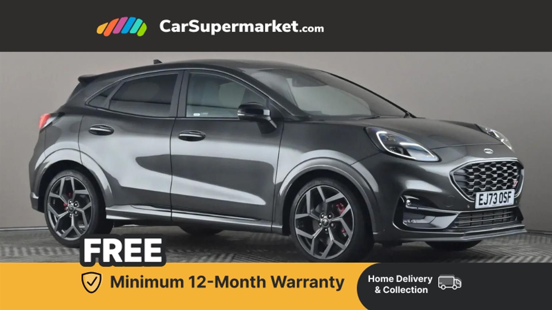 Cruise control with Intelligent speed assist,Driver impairment monitor,Emergency call service,Ford easy fuel,Front and rear parking sensors,Full digital 12.3" instrument cluster,Lane keeping aid with lane departure warning,Power assist steering,Selectable drive modes (normal, sport, eco, track),Speed sign recognition,Engine sound enhancer,ST suspension,Automatic headlights with auto high beam,Automatic rain sensing wipers,Dual chrome exhaust,Fixed LED signature headlamps,Front fog lamps,LED daytime running lights,LED rear lamps,Power foldable heated door mirrors with puddle lamps and puma logo protection,Privacy glass to side rear windows and tailgate glass,Quickclear heated windscreen,Rear side wing doors,Rear wiper,ST scuff plates,Third brake light,Unique ST body styling kit including wing mirrors and Ford Performance embossed splitter,3 seat bench in 2nd row,Alloy sports pedals,Centre console with armrest and stowage,Ford megabox extended bootspace,Ford Performance sensico partial premium leather upholstery with metal grey stitching,Front and rear head restraints,Manual 6 way driver seat adjust with lumbar adjustment,Manual 6 way passenger seat with lumbar seat adjustment,Single front passenger seat,ST flat bottomed steering wheel with metal grey stitching,ST logo projection,Unique ST gear shift knob,Wireless charging pad with electronic air temperature control (EATC),B&O Premium Audio system + Ford SYNC 3 navigation pack - Puma,Winter pack - Puma,3 rear seatbelts,Child safety lock,Electronic stability control (ESC) and hill start assist,Pedestrian/cyclist detection & post-collision braking,Pre collision assist system,Red brake calipers,Tyre pressure monitoring system (TPMS),Keyless entry and power start button,Thatcham alarm,Carbon look interior deco spears,19" 5 Spoke magnetite dark finished alloy wheel,Tyre inflation kit,Magnetic