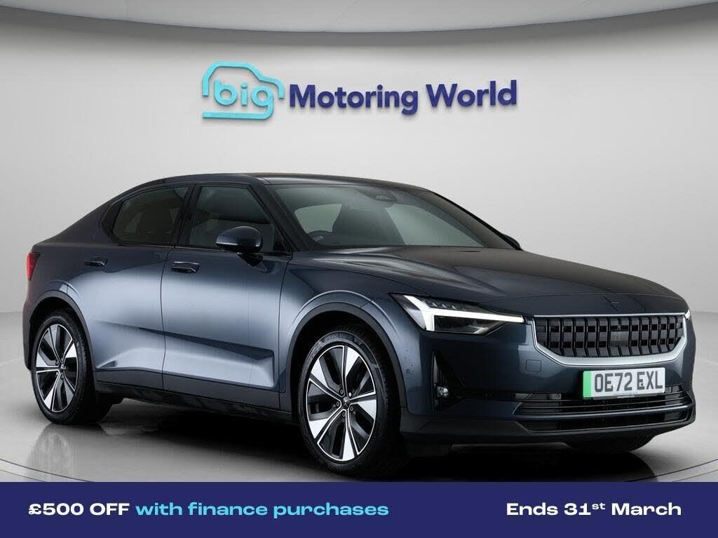 £500 towards your finance depo-Our Polestar Polestar 2 is finished in Blue. Specification includes a range of fantastic features including £500 towards your finance deposit Specification information is supplied by CAPHPI and may vary to the actual car. This data does not form any part of a buying contact. Please check specification prior to purchase in-store. The MOT is valid until September 2026, visit bigmotoringworld.co.uk for more photos, a 360 tour, service history and a free HPI report.Were BIG on peace of mind and this Blue Polestar Polestar 2 has completed our comprehensive 200 point inspection and passed all checks. Its ready for you to drive away with immediate collection in-store. We include a 90-day warranty as standard plus an option to extend for up to 3 years.Reserve this car exclusively for you, safely and securely at bigmotoringworld.co.uk, with a fully refundable £99 deposit. Test drive before you buy, with no commitment, no hassle and a completely haggle free experience. Still searching and want to see thousands more cars? We are BIG on choice with over 8000 cars to choose from.Visit our award winning web site bigmotoringworld.co.uk.Were Big Motoring World and were BIG on what matters to you.
