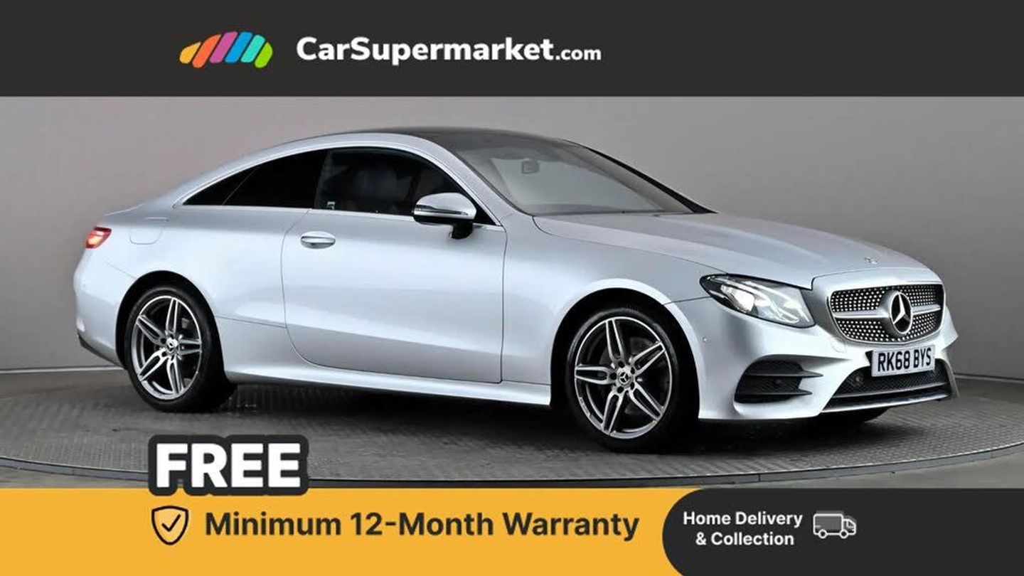 Analogue clock,Attention assist,Collision prevention assist plus,DYNAMIC SELECT with a choice of driving modes (ECO, Comfort, Sport, Sport+ and Individual),Mercedes connect me,Outside temperature display,Remote boot release,Touchpad with control wheel,Diesel particulate filter,Incorrect fuelling protection,2 USB ports in centre console,DAB Digital radio,Adaptive brake lights,AMG boot lid spoiler in body colour,Body colour door handles,Body coloured bumpers,Illuminated front door sill panels with Mercedes-Benz lettering,Pre-installation for roof rail systems,3-spoke flat bottom multifunction AMG steering wheel with Touch Control buttons, trimmed in black nappa leather,Black roof lining,Centre armrest and door handle illumination,Chrome door pins,Front and rear door pockets,Front footwell lights,Heated front seats,Interior lighting - 64 colour Ambient lighting,Interior rear light/integral reading lights,Isofix rear child seat fastenings,Multi contour front sports seats,Steering wheel gearshift paddles,Sunvisors with illuminated vanity mirrors,Memory pack - E Class,Mirror pack - E Class,Active brake assist,Adaptive driver and front passenger airbags,Drivers knee airbag,Front and rear window airbags,Head airbags,Hill hold function,Perforated front brake discs with "Mercedes-Benz" lettering,Seatbelt warning,Tyre pressure monitoring system,Warning triangle and first aid kit,Alarm system/interior protection/immobiliser,Chrome surround in electric key,Open pore black ash wood centre console,Run flat tyres,Active park assist with parktronic system,Bluetooth interface for hands free telephone,Brake wear warning light,Direct steering,Engine start/stop button,Instrument cluster with two tube-design round dials and 8.4-inch TFT multifunction display,Multi function trip computer,Reversing camera,Service indicator (ASSYST PLUS),Audio 20 with USB, touchpad and control wheel with Media Interface with Bluetooth interface and hands-free function,Steering wheel mounted audio controls,AMG bodystyling,AMG front, rear apron and side skirts,Automatic rain sensing wipers,Electric adjustable heated door mirrors,Electric front/rear windows with one touch/auto up/down,Electric tilt/slide panoramic sunroof,LED daytime running lights,LED Headlights,LED tail lights,Magic Vision Control heated windscreen wiper system,Polished aluminium upper window surround,Twin exhaust pipes,2 way rear head restraints,4 way adjustable front head restraints,40:20:40 split folding rear bench seat,Artico man-made leather upper dash trim,Bag hook in luggage compartment,Child seat recognition sensor,Cupholders in centre console,Dual zone automatic climate control,Easy entry seats,Front centre armrest with storage compartment,Front seat back map pockets,Front seatbelt electric feeders,Height/reach adjust steering wheel,Height/reach adjustable steering column,Illuminated air conditioned glovebox,Lockable glovebox,Multi function steering wheel,Rear centre armrest with 2 cupholders + storage,Sports pedals with stainless steel surfaces and rubber studs,Storage net in luggage compartment,Stowage compartment with 12V socket,Sunglasses holder,Twin front cupholders,Keyless Go comfort pack - E Class,3 point seatbelts,ABS,Active bonnet,Adaptive brake system,Crash sensor (auto door unlocking),Electronic parking brake,ESP with ASR,Front seatbelt pretensioners,Front side airbags,Seat occupancy sensor,Remote central locking
