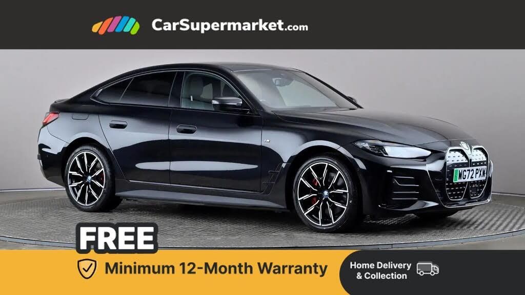 Cruise Control, Sat Nav, Heated Front Seats;BMW i4 eDrive40 M Sport 83.9kWh Auto (Pro Pack) - Black Sapphire M Sport Pro Package, 19" M Light Y-Spoke bi-colour alloys, sun protection glass, Alcantara-Sensatec interior (black with blue stitching), heated front seats and satellite navigation. Optional extras total: £3,115. MOT due: 04/01/2027