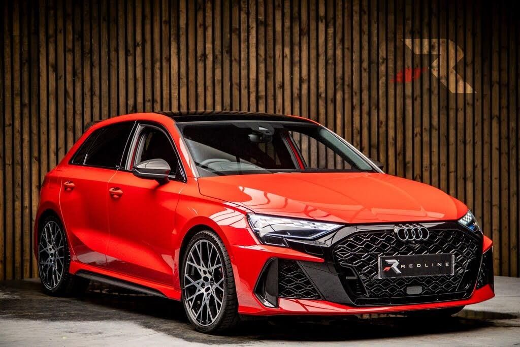 This 2025 Audi RS3 TFSI Carbon Vorsprung offers a unique ownership proposition, having had only one owner from new. This exceptional example is presented in the sought after Carbon Vorsprung trim, featuring a potent 2.5 litre petrol engine and Audi's renowned four wheel drive system, ensuring dynamic performance in all conditions. It meets Euro 6 emission standards. Inside, you will find the advanced Audi Virtual Cockpit with an RS specific design and a 12.3 inch display, complemented by a Head Up Display for effortless information access. The Audi Phone Box provides convenient wireless charging for your compatible devices.Further enhancing the driving experience, this RS3 includes the Technology Pack, which incorporates adaptive cruise control, a rear view parking camera, and a premium branded sound system. For ultimate comfort, the 3 zone deluxe automatic air conditioning allows for personalised climate control. The Technology Pack Pro adds a panoramic sunroof, opening up the cabin. These features collectively demonstrate how this Audi RS3 surpasses expectations. Its impressive acceleration is highlighted by a rapid 0 to 62 miles per hour time of just 3.8 seconds, showcasing its exhilarating performance capabilities.-BUCKETS + MUCH MORE-PLEASE CALL BEFORE TRAVELLING AS NOT ALL THE VEHICLES ARE ON SITE