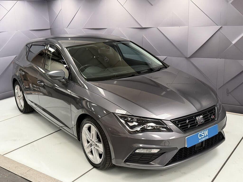 Monsoon Grey, 12V Power Supply in Centre Console, 17in Alloy Wheels - Dynamic 30-2, 7 Airbags, ABS - Anti-Lock Braking System - TCS - Traction Control System, Active Front Head Restraints and 3 Rear Head Restraints, Aluminium Front Door Sill Trims with FR Logo, Body-Coloured Door Handles, Body-Coloured Door Mirrors with Integrated LED Indicators, Boot Storage Net, Bumpers - Exclusive FR Front and Rear, Cargo Rings in the Boot, Cruise Control, Dark Tinted Rear Windows, Driver and Passenger Seat Height Adjustment, Driver and Passenger Sunvisor with Covered and Illuminated Mirrors, Drivers Seat Lumbar Adjustment, Dual Zone Climate Control, ESC - Electronic Stability Control and Tyre Pressure Warning Light Indicator, Electric Parking Brake Including Autohold Function, Electrically Folding Door Mirrors, Electro-Mechanical Power Steering, Electronic Differential Lock System - XDS, Emergency Tyre Repair Kit, Front Assist with City Emergency Braking, Front Seat Back Storage Pockets, Front Sports Seats, Front and Rear Electric Windows, Fuel Filler Flap linked to Central Locking, Full LED Headlights, Gearshift Indicator, Head Restraints - Height Adjustable Front, High Centre Console, High Gloss Black B and C Pillars, Hill Hold Control, ISOFIX Points in Outer Rear Seats with Top Tether Anchorage Points, Illuminated Door Sill Plates, Illuminated Glovebox, Instrument Lighting with Brightness Control, Interior Chrome Detailing, Lights Left On Warning Buzzer, Low Fuel Warning Light, Lower Suspension - 15mm, Media System Plus, Multi Coloured Ambient Lighting, Multi-Collision Braking System, Navigation System, Outside Temperature Gauge, RPM Counter, Radiator Grille Frame in Chrome, Radiator Grille in Black, Reading Lights Front and Rear with Ambient Spots - Boot Lights and Illuminated Foot Area, Rear Parking Sensors, Remote Central Locking with Deadlocks, SEAT Drive Profile, SEAT Full Link Smartphone Integration - Mirror Link - Apple CarPlay - Google Android Auto, Seatbelt Reminder - Front, Seats - Passenger Lumbar Adjustment, Split Folding Rear Seats - 60-40, Sports Suspension, Steering Wheel - Flat-Bottomed Perforated Leather with Red Stitching and FR Logo, Storage Box Under Drivers Seat, Trip Computer, Two Remote Keys with Window Open-Close - Door Mirror Folding and Boot Opening Functionality, Visual Twin Exhaust Pipes
