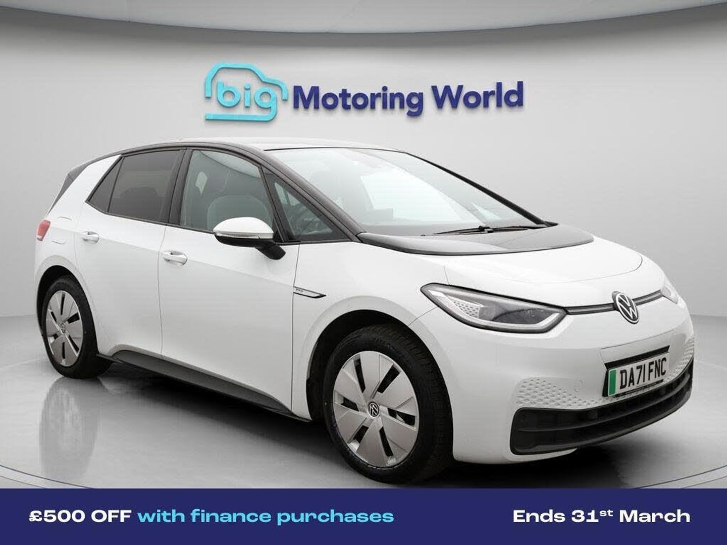 £500 towards your finance depo-Our Volkswagen ID.3 comes with optional extras worth £645. Specification includes a range of fantastic features including £500 towards your finance deposit, Apple CarPlay, Adaptive Cruise Control, Lane Assist, Electric Panoramic Roof, Android Auto, Satellite Navigation, Privacy Glass, Heated Seats, Gesture Control Specification information is supplied by CAPHPI and may vary to the actual car. This data does not form any part of a buying contact. Please check specification prior to purchase in-store. The MOT is valid until December 2026, visit bigmotoringworld.co.uk for more photos, a 360 tour, service history and a free HPI report.Were BIG on peace of mind and this White Volkswagen ID.3 has completed our comprehensive 200 point inspection and passed all checks. Its ready for you to drive away with immediate collection in-store. We include a 90-day warranty as standard plus an option to extend for up to 3 years.Reserve this car exclusively for you, safely and securely at bigmotoringworld.co.uk, with a fully refundable £99 deposit. Test drive before you buy, with no commitment, no hassle and a completely haggle free experience. Still searching and want to see thousands more cars? We are BIG on choice with over 8000 cars to choose from.Visit our award winning web site bigmotoringworld.co.uk.Were Big Motoring World and were BIG on what matters to you.