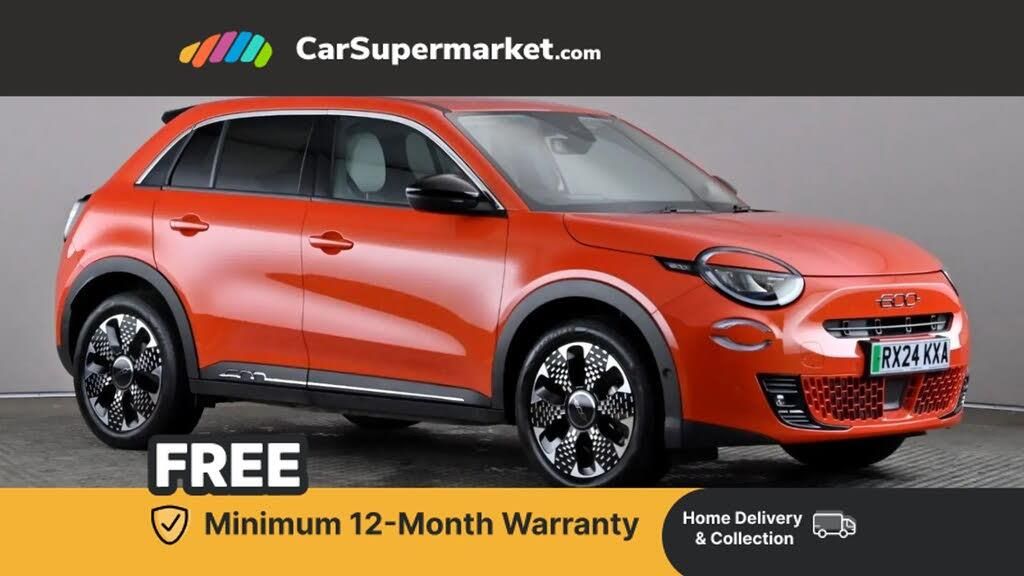 Adaptive Cruise Control, Cruise Control, Blind Spot Monitoring, Bluetooth, Parking Sensors, Lane Departure Warning, Traffic Sign Recognition, Android Auto, Apple CarPlay, Wireless Phone Charging, Sat Nav, Privacy Glass, Automatic Climate Control, Heated Front Seats;Fully electric Fiat 600 La Prima with premium specification. Includes Adaptive Cruise Control, Cruise Control, Blind Spot Monitoring, Bluetooth, Parking Sensors, Lane Departure Warning, Traffic Sign Recognition, Apple CarPlay, Android Auto, Wireless Phone Charging, Sat Nav, Privacy Glass, Automatic Climate Control, Heated Front Seats and 18" Alloy Wheels. Optional Extra: Synthetic Leather ? Fiat Ivory Monogram with Turquoise Details. Last Serviced: 16/08/2025. MOT Due: 29/04/2027.