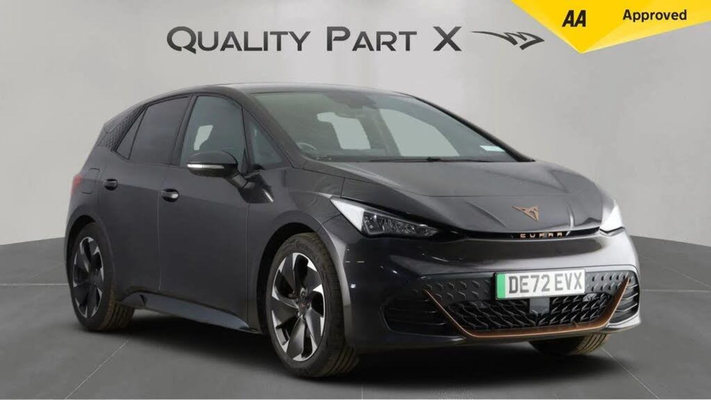 11 kW AC Charging Capacity, 120kW DC Charging Capacity, 19in Alloy Wheels - Machined Typhoon, 3-Point Seatbelts, 5 Infotainment Speakers, 5.3in Digital Cockpit with 12in Central Display Infotainment System, Aluminium Pedals, Anti-Theft Alarm System - Interior Monitoring - Backup Horn and Towing Protection, Augmented Reality Head-Up Display, Auto Dimming Rear View Mirror, Bluetooth, CUPRA Connect, CUPRA Emblem on Steering Wheel, Charging Cable - Mode 3 - 16amp, Climatronic Dual-Zone Air Conditioning, DAB and AM/FM Radio, Dark Tinted Rear Windows, Door Mirrors Electrically Adjustable - Folding and Heated, Driver Alert System, Driver and Front Passenger Airbags with Front Passenger Airbag Deactivation, Drivers and Passenger Seats - Manual Height Adjustment, Driving Profile Selection, Dynamic Steering, Electric Auxiliary Air Heater, Emergency Steering Support with Turn Assist, Emergency Tyre Repair Kit, Extended Safety System, Forward Collision Warning with Automatic Braking, Front Side Curtain Airbag, Full LED Headlights with Welcome Home Function and Adverse Weather Function, Grey Exterior Mirrors, Heat-insulated Glass and Acoustic Windshield, Heated - Leather-Wrapped - Multifunction Steering Wheel, Heated Front Seats, Heated Washer Nozzles, ISOFIX Points in Outer Rear Seats with Top Tether Anchorage Points, Illuminated Sunvisor with Mirror, Interaction Airbag in Front, Keyless-Go Central Locking System, LED Rear Lights, Lane Assist, Locking Wheel Bolts with Anti-theft Protection, Multi-Coloured Interior Ambient Lighting, Park Assist - including Front and Rear Sensors, Pilot - M, Shock Absorption in Front, Sports Rear Shock Absorption, Tool Kit, Transport Protection Film, Tyre Pressure Monitoring System, USB Type C x4 - x2 Front and x2 Rear, Unsplit Rear Seat Bench - Split Folding Backrest, Visual and Acoustic Seatbelt Reminder, Voice Assistant, Windshield Wiper with Light-Rain Sensor, Wireless Full Link Smartphone Integration, e-Call Service