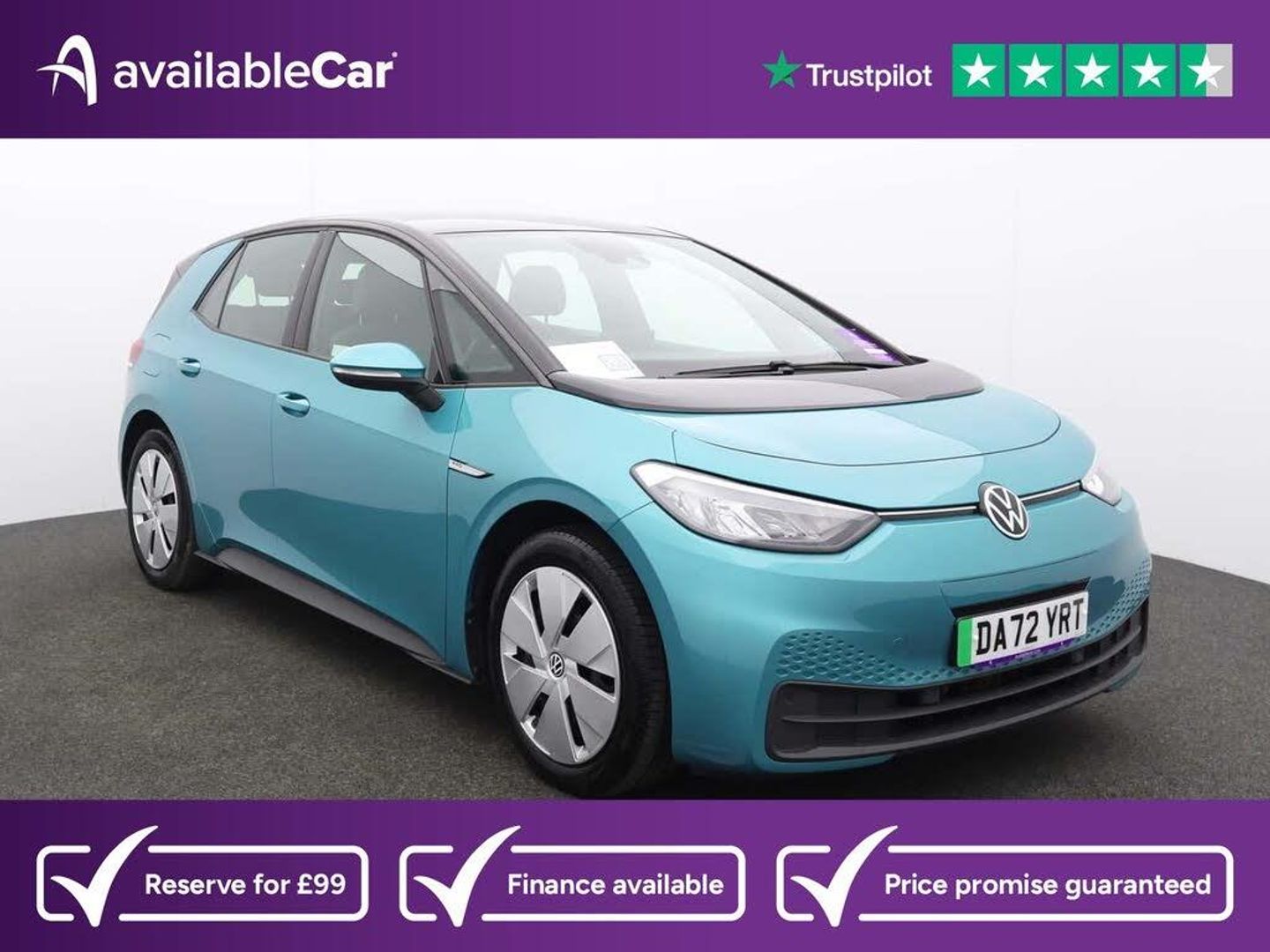 1-Zone Climatronic,10in Infotainment System,18in Steel Wheels - Aero,ABS - Anti-Lock Braking System,Adaptive Cruise Control ACC including Front Assist - Radar Sensor Controlled Distance - Monitoring System - City Emergency Braking System - Cruise Control and Speed Limiter,Airbag - Front Centre,Airbags - Curtain Front,Airbags - Driver,Airbags - Front Side,Airbags - Passenger,All-LED Headlights with Reflector Technology,Armrest Integrated into Front Seats,Black Roof,Body Coloured Bumpers - Door Handles and Door Mirrors with Integrated Indicators,Car2X Technology,Comfort Package,DAB Digital Radio,Digital Dashboard,Driver Alert System,Electric Windows - Front and Rear,Electronic Parking Brake with Auto Hold Function,Exterior E-Sound,Free WeConnect Start for First 3 Years,Heated Rear Window,ID Light,Infotainment Package,Interior Alarm,Interior Ambient Lighting - 10 Colours,Lane Assist,Mode 3 - 32-AMP - 7.2kW Charging Cable for Charging at Public Charge Points,NCAP Pack - Forward Collision Warning - Extended and Proactive Pedestrian Protection,Natural Voice Control,Parking Sensors - Front and Rear,Power Assisted Steering - Speed Sensitive,Remote Tailgate Unlocking,Security and Service - SOS Buttons,Special WeCharge Conditions for ID 3 Customers within First 3 Years,We Connect ID App,Winter Driving Mode,Wireless App Connect