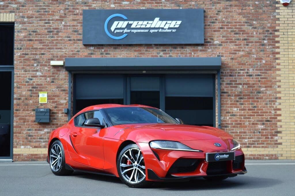 18in Alloy Wheels - 5 Double Spoke - Black and Silver Bi-Tone Machined-face, 4 Speaker Audio System, ABS - Anti Lock Braking System, Active Sound Control, Active Sports Differential, Adaptive Automatic High Beam, Adjustable Speed Limiter -ASL- Switch on Steering Wheel, Aluminium Pedals, Audio Switches on Steering Wheel, Auto Dimming Rear View Mirror, Auto Wipers, Automatic Headlight Cut-Off, Automatic Headlight Levelling, Automatically Retractable Door Mirrors, Autonomous Emergency Braking, Bluetooth Hands Free System, Boot Door Release with Push Button, Boot Light, Cruise Control Switch on Steering Wheel, Cupholders - Front, DAB Digital Radio, Dark Grey Insert on Centre Console, Daytime Running Lights - LED, Digital Speedometer, Drive Mode Selector, Driver and Front Passenger Floor Mats, Driver and Front Passenger Personal Lights, Driver and Passenger Seatback Pockets, Drivers Seat Memory, Dual Exhaust Pipes, Dual-Zone Automatic Air Conditioning, EBS - Emergency Brake Signal, Electric Power Steering - EPS, Electronic Parking Brake, Exhaust Pipe Finisher - Chrome, Front 12V Power Outlet, Front LED Light Guide, Front Power Windows, Front Seat Belt Reminder, Gear Shift Indicator - GSI, Glass-Integrated Antenna, Headlights - Automatic, Headlights - Follow Me Home, Headlights - LED, Heated Driver and Front Passenger Seat, ISOFIX Child Restraint System, Immobiliser, Indicator Integrated in Door Mirrors, Intrusion Sensor, LED High-Mounted Stop Light, LED Indicators, LED Rear Fog Lights, Lane Departure Alert with Steering Control, Light on Drivers and Passenger Sun Visor, Locking Wheel Nuts, Manually Height-Adjustable Driver and Passenger Seat, Manually Reclining Driver and Passenger Seat, Manually Sliding Driver and Passenger Seat, Manually-Tilting Cushion on Driver Seat, Microphone, Navigation and Access to Connected Services, Paddle Shift, Piano Black Door Mirrors, Power Adjustable Lumbar Support on Driver and Passenger Seat, Power Door Locks, Pre-Collision Warning System with Pedestrian and Cyclist Detection, Rear Lights - LED, Rear-View Camera Display, Red Sports Rear Brake Calipers, Remote Boot Door Release in Cabin, Remote Door Locking, Road Sign Assist, Scuff Plates - Aluminium, Service Schedule Warning, Smart Entry and Push-Button Start, Speed-Detecting Automatic Door Locks, Sport Mode Button, Sports Seats - Front, Start Holding Control, Steering Wheel - Manual Telescopic Adjustment, Steering Wheel - Manual Tilt Adjustment, Supplemental Restraint System - SRS - Airbags - 7 Airbags, Supra Sports Front Brake Calipers, Suspension - Adaptive Variable - AVS, TPMS - Tyre Pressure Monitoring System, Tilt Detection Sensors, Tonneau Cover, Toyota Supra Connect, Toyota Supra Safety Plus, Traction Control - TRC, Tyre Repair Kit, USB Connection, VSC - Vehicle Stability Control, Vanity Mirror on Driver and Passengers Sun Visor, Voice Recognition, eCall Emergency Call System, Alcantara - Black, Prominence Red Paintwork