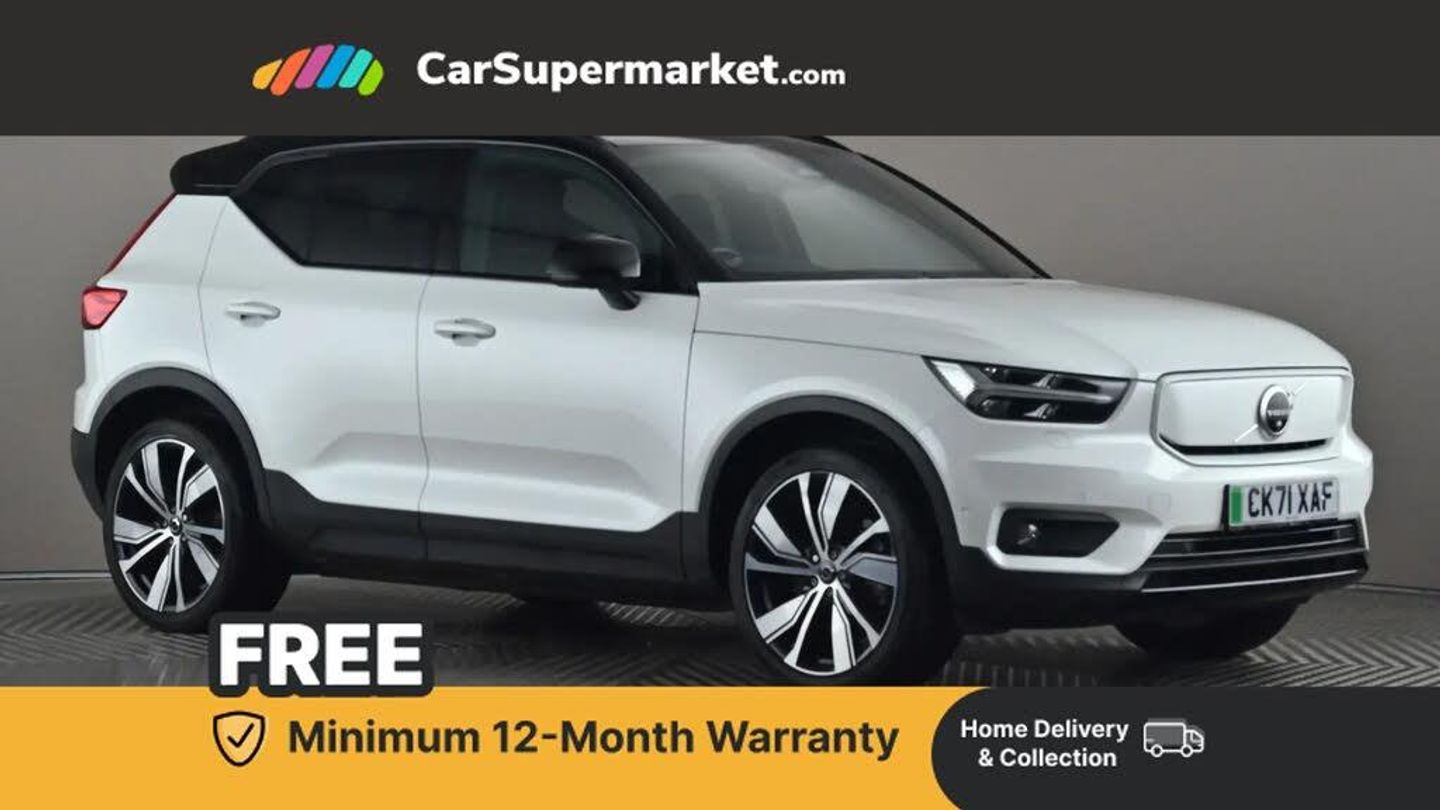 12.3" Progressive Driver Display,360 degree surround view parking camera,9" centre console portrait touch screen,Adjustable steering wheel force,Bluetooth hands free telephone kit,Driver assistance (pilot assist and adaptive cruise control),Driver awareness - Blind spot information system with steer assist, cross traffic alert with autobrake and rear collision warning and mitigation,Front park assist,Google automatic services - Nav with google maps, apple carplay/android auto, voice recognition with google assistant,Lane keep assist with driver alert control,Oncoming Lane Mitigation,Power operated tailgate,Rear park assist camera,Speed limiter,Speed sensitive steering,Volvo on call with charge station locations and route planning and pre climatisation,Wireless Smartphone Integration includes Apple CarPlay and Android auto,Wireless/Inductive Mobile Phone Charging,11 kW AC onboard charger,7m 10amp charge cable with 3 pin plug,Dynamic chassis,Electric front and rear axle drive,Recharging port located in nearside front wing,DAB Digital radio,Premium Sound by Harman Kardon, Dolby Pro Logic II Surround Sound, Dirac Unsion,13 speakers/600W and subwoofer,Steering wheel mounted remote controls,Active bending LED headlights,Adaptive brake lights with high level LED brake lights,Auto dimming exterior rear view mirror,Auto dimming interior mirror,Automatic headlamp levelling,Black stone door mirrors,Black stone roof,Colour co-ordinated front grille and surround,Colour coordinated auto folding and heated power door mirrors,Dark tinted windows for rear door side windows and cargo compartment,Embossed rear side roof pillar,Front and rear electric windows,Front recharge tread plates,Headlight cleaning system,High gloss black front and rear skid plate,High gloss black lower front bumper,High gloss black roof rails,High gloss black sensus surround deco,High gloss black window trim,Home safe and approach lighting,LED front fog lamps with cornering function,Power glass tilt and slide panoramic sunroof with sun curtain,Rain sensor with automatic windscreen wiper activation,Rear wiper,Roof antenna,Roof spoiler,Visible VIN plate,12V socket in front tunnel console and luggage compartment,2 zone electronic climate control and rear air vent with clean zone air quality system and pollen filter,3 spoke sports tailored steering wheel,60/40 versatile split folding rear seat,A-pillar parking ticket holder,Ambient front door and instrumental panel lighting,Centre console cupholders and storage,Charcoal headlining,Driver's side lower dashboard credit card storage compartment,Extended front seat cushions,Flexible load floor and grocery bag holder,Front and Rear reading and courtesy lights,Front footwell illumination,Front headrests,Front load compartment (31 litres),Front tunnel net pocket and integrated waste bin,Glovebox bag hook,Heat pump (Enhanced cabin heating and cooling efficiency with optimal vehicle range),Heated front seats,Heated rear seats,Heated steering wheel,Height adjustable passenger seat,Height/reach adjustable steering column,Height/tilt adjustable driver's seat,High gloss centre tunnel deco,Illuminated glovebox,Illuminated luggage compartment,Illuminated tailgate,Illuminated vanity mirrors + ticket holder,Isofix attachments on outer rear seats,Load protection net,Multi directional lumbar support,Multicolour theatre lights,Power driver seat with memory + exterior mirrors memory,Power folding rear headrests,Power passenger seat,Rear armrest / integral cup holders / storage tray,Rear coat hook,Sports pedals,Tailored gearknob,Underfloor cargo storage,3x3 point rear seatbelts,City safety includes pedestrain detection and front collision warning with full auto brake,Drivers knee airbag,Dual stage driver/passenger airbags,Electronic parking brake with auto hold,First aid kit,Front and outer rear seatbelt reminder and pretensioners,Front seats SIPS airbags,Hill descent control,Hill start assist,Inflatable curtain,Passenger airbag cut-off device,Power child locks on rear doors,Road sign information display,Run off Road Mitigation,Run off Road Protection,SIPS (Side Impact Protection System),Slippery road and hazard light alert,Stability and Traction Control with Spin control, Engine Drag Control and Corner Traction Control,Tyre pressure monitoring system,Vehicle deceleration control with Anti-lock Brake System, Electronic Brake Distribution and Emergency Brake Assist,Warning triangle,WHIPS whiplash protection system - front,Anti-theft alarm including immobiliser/volume sensor + level sensor,Care key with user defined top speed,Convenient entry and start,Key integrated remote control central locking + fuel flap with deadlocking system and auto open/close power windows,Keyless drive plus handsfree tailgate opening/closing,Locking wheel nuts,Private locking for tailgate,Cutting edge aluminium inlay,20'' 5 V spoke diamond cut matt graphite alloy wheels,Tyre sealant kit + 12v compressor,Crystal White
