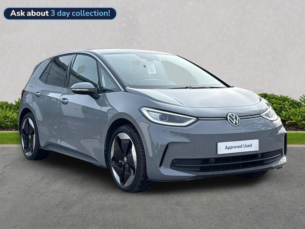 Volkswagen ID.3 Pro S 77kWh Match (204 PS) Registration: KW25 YTR Mileage: 4,762 miles Colour: Moonstone Grey Black Interior: Melange Grey-Soul A nearly new example of the ID.3 Pro S Match, offering the larger 77kWh battery and excellent real-world range, combined with strong performance and a high level of standard specification. Finished in Moonstone Grey with contrasting black roof, this car delivers modern EV driving with premium comfort and technology. Key Features 77kWh Pro S battery (204 PS) Discover Pro Navigation Matrix LED headlights with Dynamic Light Assist LED rear tail lights with dynamic indicator Heated front seats Heated multi-function steering wheel Air Care Climatronic (2-zone climate control) Wireless smartphone charger Ambient lighting with illuminated front grille Rear privacy glass Park Assistance Plus with front & rear sensors Rear view camera Keyless entry and starting Alarm with interior protection Front Assist with proactive passenger protection A superb specification on a low mileage example, ready to drive away. Volkswagen Approved Used Benefits (BEV 2026) Standard cover with an Approved Used purchase: ? 1 Year Warranty ? 1 Year Roadside Assistance