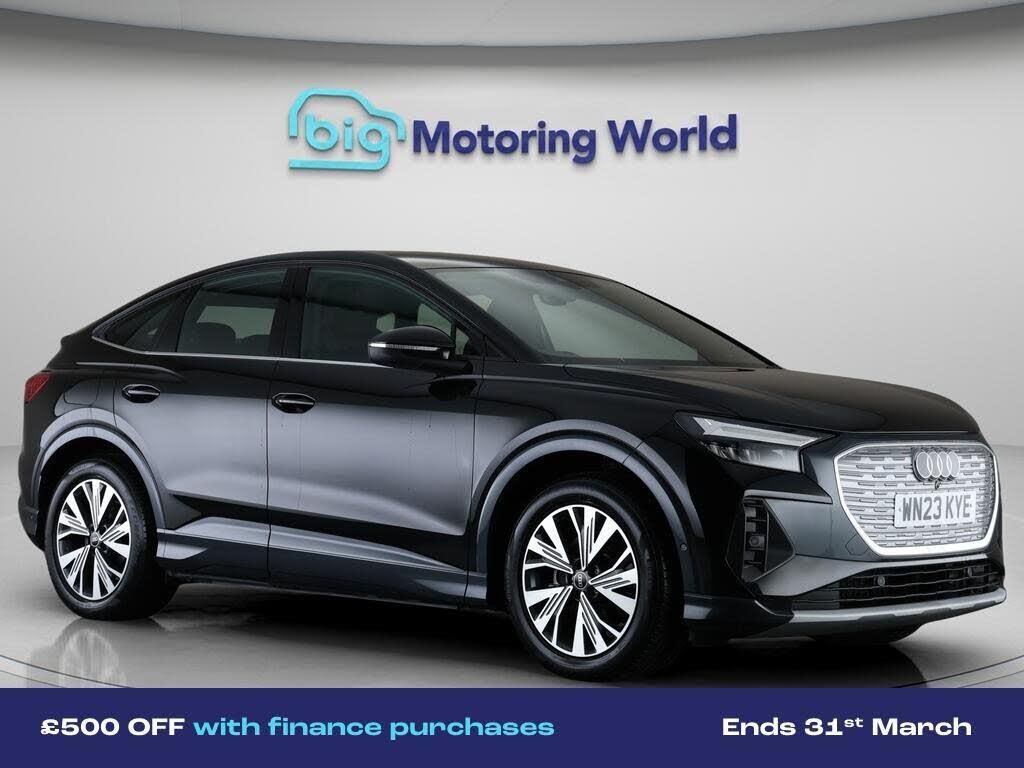 £500 towards your finance depo-Our Audi Q4 e-tron is finished in Black. Specification includes a range of fantastic features including £500 towards your finance deposit, 19'' Alloy wheels, Apple CarPlay, Lane Assist, Android Auto, Satellite Navigation, Heated Seats, Rear View Camera, Bluetooth, Parking Sensors Specification information is supplied by CAPHPI and may vary to the actual car. This data does not form any part of a buying contact. Please check specification prior to purchase in-store. The MOT is valid until February 2027, visit bigmotoringworld.co.uk for more photos, a 360 tour, service history and a free HPI report.Were BIG on peace of mind and this Black Audi Q4 e-tron has completed our comprehensive 200 point inspection and passed all checks. Its ready for you to drive away with immediate collection in-store. We include a 90-day warranty as standard plus an option to extend for up to 3 years.Reserve this car exclusively for you, safely and securely at bigmotoringworld.co.uk, with a fully refundable £99 deposit. Test drive before you buy, with no commitment, no hassle and a completely haggle free experience. Still searching and want to see thousands more cars? We are BIG on choice with over 8000 cars to choose from.Visit our award winning web site bigmotoringworld.co.uk.Were Big Motoring World and were BIG on what matters to you.