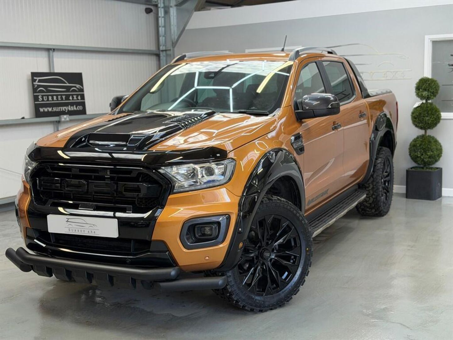 NO VAT NO VATWET BELT JUST DONE WITH SERVICE.ONE OWNER FROM NEW.STUNNING TOP OF THE RANGE 2.0 LITRE BI TURBO FACE LIFT FORD RANGER WILDTRAK AUTOMATIC FINISHED IN METALLIC SABOR ORANGE WITH BLACK LEATHER SEATS, SATELLITE NAVIGATION, REVERSE CAMERA, LED, BLUETOOTH, AUX, MULTI FUNCTION STEERING WHEEL, ELECTRIC WINDOWS, ELECTRIC HEATED SEATS, TOUCH SCREEN, ELECTRIC MIRRORS, AIR CONDITIONING, EURO 6, SYNC 3, ISOFIX, NEW GLOSS BLACK FORD RAPTOR GRILL, NEW 20 INCH BLACK ALLOYS WITH NEW ALL TERRAIN TYRES, APPLE CAR PLAY, LOCKABLE REAR ROLLER SHUTTER, NEW FRONT NUDGE BAR, NEW BONNET SCOOP WHICH IS FITTED AT CUSTOMER CHOICE, NEW GLOSS BLACK RAPTOR ARCHES, ULEZ, TOW BAR WITH ELECTRICS.2 KEYS, FULL SERVICE HISTORY WITH SERVICE JUST CARRIED OUT, 12 MONTHS MOT UNTIL MARCH 2027FINANCE AVAILABLE FROM 9.9% APR WITH HP OR PCP OPTIONS AVAILABLE AND ANY PART EXCHANGE WELCOME.CALL OUR SALES LINE ON 01483-959939 TO BOOK AN APPOINTMENT OR WHATSAPP US ON 07515596289PLEASE VISIT OUR WEBSITE FOR MORE PICTURES WWW.SURREY4X4.COM-NO VAT-WET BELT DONE-FINANCE