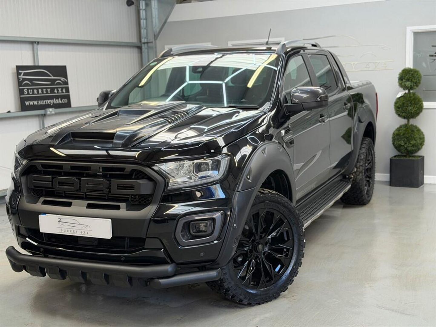 NO VAT NO VATSTUNNING TOP OF THE RANGE 2.0 LITRE BI TURBO FACE LIFT FORD RANGER WILDTRAK AUTOMATIC FINISHED IN METALLIC BLACK WITH BLACK LEATHER SEATS, SATELLITE NAVIGATION, REVERSE CAMERA, LED, BLUETOOTH, AUX, MULTI FUNCTION STEERING WHEEL, ELECTRIC WINDOWS, ELECTRIC HEATED SEATS, TOUCH SCREEN, ELECTRIC MIRRORS, AIR CONDITIONING, EURO 6, SYNC 3, ISOFIX, NEW GLOSS BLACK FORD RAPTOR GRILL, NEW 20 INCH BLACK ALLOYS WITH NEW ALL TERRAIN TYRES, APPLE CAR PLAY, LOCKABLE REAR ROLLER SHUTTER, NEW FRONT NUDGE BAR, NEW BONNET SCOOP WHICH IS FITTED AT CUSTOMER CHOICE, NEW GLOSS BLACK RAPTOR ARCHES, ULEZ, TOW BAR WITH ELECTRICS.2 KEYS, FULL SERVICE HISTORY WITH SERVICE JUST CARRIED OUT, 12 MONTHS MOT UNTIL MARCH 2027FINANCE AVAILABLE FROM 9.9% APR WITH HP OR PCP OPTIONS AVAILABLE AND ANY PART EXCHANGE WELCOME.CALL OUR SALES LINE ON 01483-959939 TO BOOK AN APPOINTMENT OR WHATSAPP US ON 07515596289PLEASE VISIT OUR WEBSITE FOR MORE PICTURES WWW.SURREY4X4.COM-NO VAT-ULEZ-FINANCE