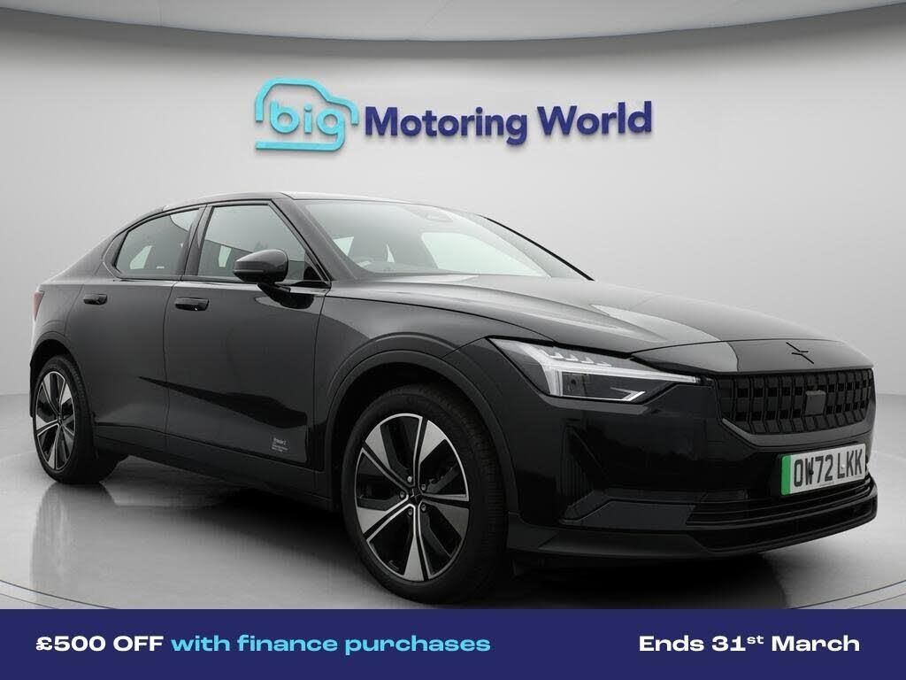 £500 towards your finance depo-Our Polestar Polestar 2 is finished in Black. Specification includes a range of fantastic features including £500 towards your finance deposit, Dynamic Chassis Control, 19'' Alloy wheels, Apple CarPlay, Electric Seats, Android Auto, Heated Seats, Rear View Camera, Memory Seats, Internet Specification information is supplied by CAPHPI and may vary to the actual car. This data does not form any part of a buying contact. Please check specification prior to purchase in-store. The MOT is valid until January 2027, visit bigmotoringworld.co.uk for more photos, a 360 tour, service history and a free HPI report.Were BIG on peace of mind and this Black Polestar Polestar 2 has completed our comprehensive 200 point inspection and passed all checks. Its ready for you to drive away with immediate collection in-store. We include a 90-day warranty as standard plus an option to extend for up to 3 years.Reserve this car exclusively for you, safely and securely at bigmotoringworld.co.uk, with a fully refundable £99 deposit. Test drive before you buy, with no commitment, no hassle and a completely haggle free experience. Still searching and want to see thousands more cars? We are BIG on choice with over 8000 cars to choose from.Visit our award winning web site bigmotoringworld.co.uk.Were Big Motoring World and were BIG on what matters to you.