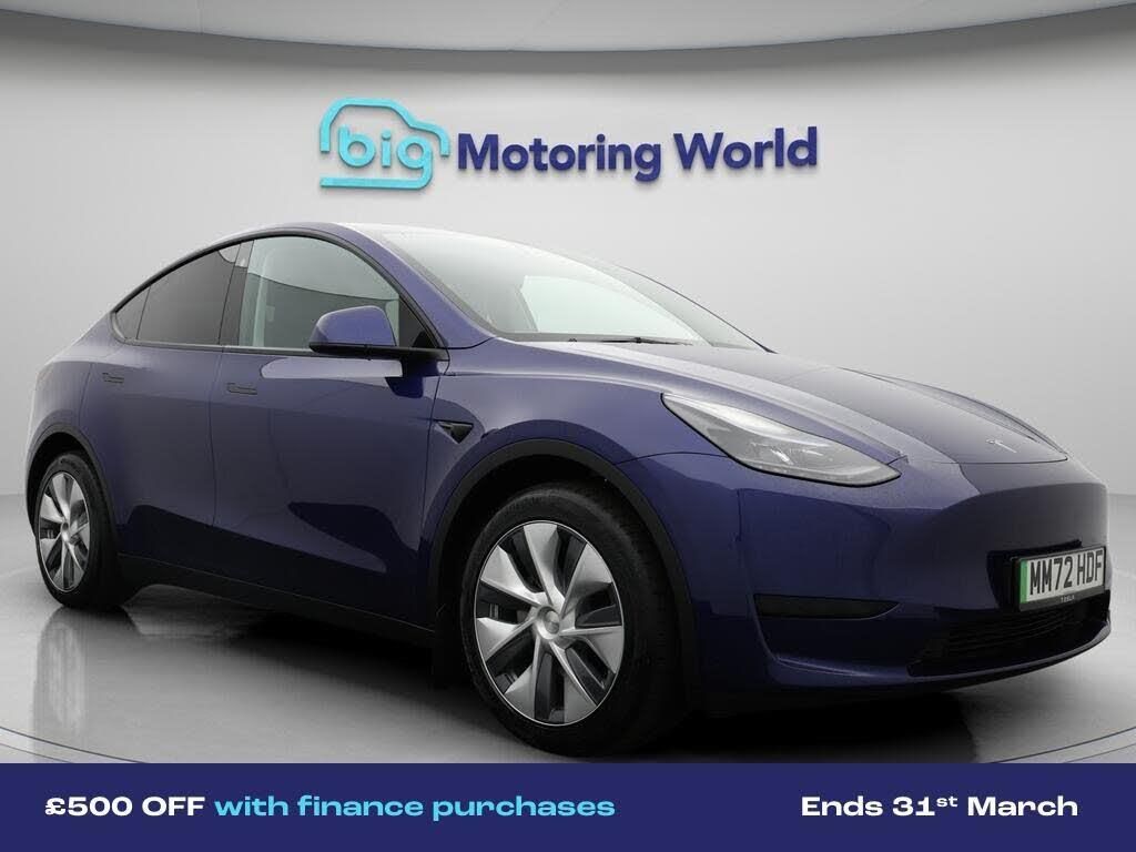 £500 towards your finance depo-Our Tesla Model Y is finished in Blue. Specification includes a range of fantastic features including £500 towards your finance deposit, Leather Seats, Satellite Navigation, Privacy Glass, Heated Seats, Wireless Phone Charging, Rear View Camera, Heated Rear Seats, Heated Steering Wheel, Bluetooth Specification information is supplied by CAPHPI and may vary to the actual car. This data does not form any part of a buying contact. Please check specification prior to purchase in-store. The MOT is valid until December 2026, visit bigmotoringworld.co.uk for more photos, a 360 tour, service history and a free HPI report.Were BIG on peace of mind and this Blue Tesla Model Y has completed our comprehensive 200 point inspection and passed all checks. Its ready for you to drive away with immediate collection in-store. We include a 90-day warranty as standard plus an option to extend for up to 3 years.Reserve this car exclusively for you, safely and securely at bigmotoringworld.co.uk, with a fully refundable £99 deposit. Test drive before you buy, with no commitment, no hassle and a completely haggle free experience. Still searching and want to see thousands more cars? We are BIG on choice with over 8000 cars to choose from.Visit our award winning web site bigmotoringworld.co.uk.Were Big Motoring World and were BIG on what matters to you.