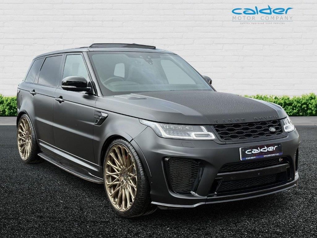 Simply Stunning SVR Finished in Santorini Black with the Full Body Satin Black PPF Wrap, Finished with Ebony Perforated Windsor Leather Upholstery and Piano Black Finishers. This car has only had One Former Keeper with a Full Land Rover Service History. This car looks outstanding and has had a fortune spent on it by its former keeper, its has been loved and cherished and was his pride and joy. Lovely factory spec with Opening Glass Panoramic Sunroof, Centre Console Fridge, Side Steps, privacy Glass, Heated Steering Wheel, Heated and Cooled Front and Heated Rear Seats, 360 Degree Cameras, Park Pro Park with Self parking, Detachable Tow Bar and so much more. Sitting on Near new 24" Bronze Barugzai Alloy wheels with 295/30/24 tyres costing £5500, Full Body Satin Black PPF Wrap with Carbon Fibre Bonnet Centre costing £3000, Upgraded Brake Discs £950, Ghost Immobilizer £495 Totalling £9945. This car is a proper example with Two Keys, Ghost Immobilizer and we will carry out a Full Service before collection. This Approved vehicle come's with our full care package including up to 2 years Platinum Plus Warranty with The Motoring Organisation, 1 years MOT, Full pre-delivery inspection, Full service ( if required ) and Fully Valeted. All Calder Motor Company Premier Approved vehicles are prepared to the highest standard in every way, cosmetically and mechanically. National delivery available. The Motoring Organisation Platinum Plus extended warranty available for up to 2 years. Face time or whats app video walk round available on request. SUNDAY'S BY APPOINTMENT ONLY. EVERY EFFORT HAS BEEN MADE TO ENSURE THE ACCURACY OF THE INFORMATION REGARDING THE VEHICLES SPEC HOWEVER ERRORS MAY OCCUR. CHECK WITH A SALESPERSON ABOUT ITEMS WHICH MAY AFFECT YOUR DECISION TO PURCHASE. Please feel free to Contact us via Phone, Email, Social Media. Nationwide Delivery, All Vehicles Are Fully Disinfected. Full Walkround Video, Face Time Etc. . 24" Barugzai Alloy Wheels and Tyres,360 Degree Parking Aid,360 Degree Surround Camera System,Active Exhaust Control,Adaptive Cruise Control with Stop and Go,Adaptive Dynamics,Android Auto,Apple CarPlay,Auto-Dimming Interior Mirror,Automatic Headlights,Blind Spot Monitor,Bluetooth Connectivity,CD-DVD Player,Configurable Dynamics,Configurable Interior Mood Lighting,Contrast Painted Roof - Narvik Black,DAB - Digital Audio Broadcast,Electrically Adjustable Steering Column,Electronic Active Differential with Torque Vectoring by Braking,Emergency Braking,Extended Grand Black Veneer,Extended Leather Upgrade,Follow Me Home Lighting,Front Centre Console Refrigerator Compartment,Ghost Immobilizer ,Heated and Cooled Front Seats with Heated Rear Seats,Heated Front and Rear Seats,Heated Steering Wheel,Heated Windscreen with Heated Washer Jets,High Speed Emergency Braking,Hill Launch Assist,Illuminated Metal Treadplates with Brand-Name Script,InControl Apps,InControl Protect,Interactive Driver Display,Keyless Entry,La