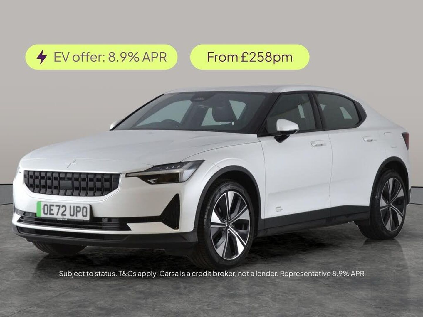 Experience electric driving at its best with this stylish white Polestar 2. Enjoy premium features like heated seats, adaptive LED headlights, a driver memory seat, and effortless keyless entry. The advanced reversing camera and front and rear parking sensors make city parking a breeze. Stay connected with Apple CarPlay and sat nav, while cruise control and lane departure warning add confidence on every journey. Luxurious adjustable electric seats ensure a comfortable ride in this modern, high-tech fastback. 2 services recorded, last serviced on 03/03/2026 at 33,350 miles. MOT to 20/02/2027. Visit our website for service history, online valuation, full vehicle specification plus multiple images. This vehicle is VAT qualifying. Any feature/option specified here is from 3rd party data. We cannot guarantee the accuracy of any specification supplied by a 3rd party. We recommend that you physically check the specification of the vehicle on site prior to purchase. This information does not form part of the buying contract. Terms & Conditions apply. We have over 2,000 cars available from our 10 national branches, check our website to see all our stock. Our Trustpilot rating is 4.4/5 with over 9,000 reviews.