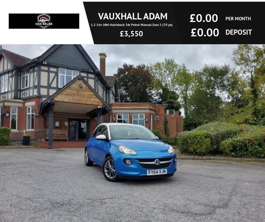 Don't Miss Out on This Fabulous VAUXHALL ADAM 1.2 16v JAM Hatchback 3dr Petrol Manual Euro 5 (70 ps) Superb Reliable affordable Low cost Running Superb Fore New Drivers A to B destination Or Long Drive Comes With Lots Of Spaces like 12V Power Socket, 16in Alloy Wheels - Triple Cross In Manoogian, ABS - Anti-Lock Braking System, Air Conditioning, Air Recirculation System, Airbags - Deactivation Switch For Front Passengers, Airbags - Front Curtain, Airbags - Front Passenger, Airbags - Side Impact, Aux in Socket, Black B-Pillars, Body-Colour Door Handles, Brake Lights - Adaptive, Bumpers - Body Coloured, CBC - Cornering Brake Control, CD Player - with MP3 Compatability, Chrome Effect Interior Door Handles, City Mode Button - Provides Lighter Steering at Parking Speeds, Cruise Control with Speed Limiter, DAB Digital Radio, Daytime Running Lights, Door Mirrors - Body Colour, Door Mirrors - Electrically Adjustable-Heated, Door Pockets, Drinks Holder - x2 Rear Centre Console, Drivers Dual-Stage Airbag, EBA - Emergency Brake Assist, EBD - Electronic Brakeforce Distribution, ESP - Electronic Stability Programme, Electric Windows - Front with One Touch Facility, Front Passengers Seat Height Adjuster, Glovebox - Illuminated, Grab Handles - Front, HSA - Hill Start Assist, Height Adjustable Front and Rear Headrests, ISOFIX For Outer Rear Seats, Illuminated Boot, Immobiliser, Interior Pollen Filter, Load Compartment - Cover, Locking Wheel Nuts, Mobile Phone System with Bluetooth Connectivity, PAS - Power Assisted Steering, Pedal Release System, RDS - Radio Data-Traffic System, Remote Central Locking, Roof - Body Colour, Seatbelt Unfastened Warning, Seats - 50-50 Split Rear Back, Seats - Drivers Height Adjustment, Speakers - x5, Speed Limiter, Steering Column - Energy Absorbing, Steering Wheel - Height-Reach Adjustable, Steering Wheel - Leather, Steering Wheel - Mounted Controls For Audio, Straight Line Stability Control, Sunvisors - Driver and Passenger with Vanity Mirrors, Tinted Glass, Traction Control, Trip Computer, Tyre Inflation Kit, Tyre Pressure Monitoring System, USB Connection with iPod Control And Much More Don't Miss Out book your Viewing and test drive with us on our website or give us a call on 07450 827931 Healdgreen car sales Delivery Available Finance Available With Low Rate Don't Miss Out on This Fabulous VAUXHALL ADAM 1.2 16v JAM Hatchback 3dr Petrol Manual Euro 5 (70 ps) Superb Reliable affordable Low cost Running Superb Fore New Drivers A to B destination Or Long Drive Comes With Lots Of Spaces like 12V Power Socket, 16in Alloy Wheels - Triple Cross In Manoogian, ABS - Anti-Lock Braking System, Air Conditioning, Air Recirculation System, Airbags - Deactivation Switch For Front Passengers, Airbags - Front Curtain, Airbags - Front Passenger, Airbags - Side Impact, Aux in Socket, Black B-Pillars, Body-Colour Door Handles, Brake Lights - Adaptive, Bumpers - Body Coloured, CBC - Cornering Brake Control, CD Player - with MP3 Compatability, Chrome Effect Interior Door Handles, City Mode Button - Provides Lighter Steering at Parking Speeds, Cruise Control with Speed Limiter, DAB Digital Radio, Daytime Running Lights, Door Mirrors - Body Colour, Door Mirrors - Electrically Adjustable-Heated, Door Pockets, Dri