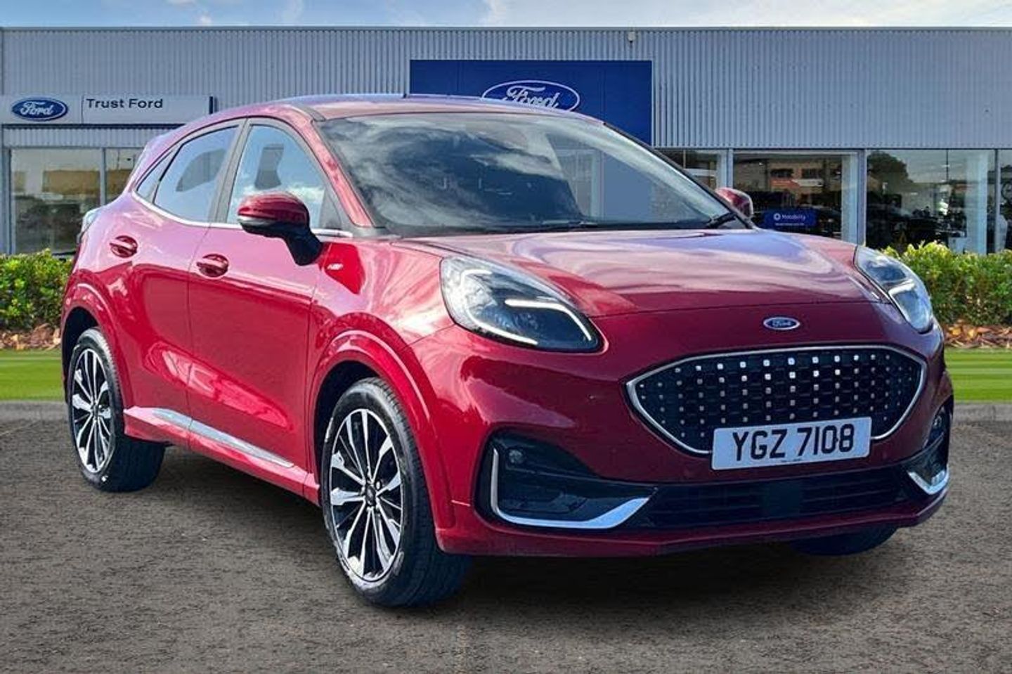 Driver impairment monitor, Emergency call service, Ford easy fuel, Front and rear parking sensors, Full digital 12.3 instrument cluster, Lane keeping aid with lane departure warning, Power assist steering, Selectable drive modes(Normal, Eco, Sport, Slippery and Trail), Speed sign recognition, Automatic headlights with auto high beam, Automatic rain sensing wipers, Bodyside chrome styling, Fixed LED signature headlamps, Front fog lamps, Gloss black with chrome elements on front and rear bumpers, High chrome waistline, LED daytime running lights, LED rear lamps, Power foldable heated door mirrors with puddle lamps and puma logo protection, Privacy glass to side rear windows and tailgate glass, Quickclear heated windscreen, Rear side wing doors, Rear wiper, Third brake light, Vignale body styling kit with unique grille, 3 seat bench in 2nd row, Centre console with armrest and stowage, Ford megabox extended bootspace, Front and rear floor mats, Front and rear head restraints, Manual 4 way driver seat adjust with lumbar adjustment and massage function, Manual 4 way passenger seat adjust with lumbar adjustment and massage function, Premium sensico leather upholstery with metal grey stitching, Premium sensico perforated flat bottomed steering with metal grey stitching, Premium sensico wrapped instrument cluster, Single front passenger seat, Wireless charging pad with electronic air temperature control (EATC), 3 rear seatbelts, Child safety lock, Electronic stability control (ESC) and hill start assist, Pedestrian/cyclist detection & post-collision braking, Pre collision assist system, Tyre pressure monitoring system (TPMS)