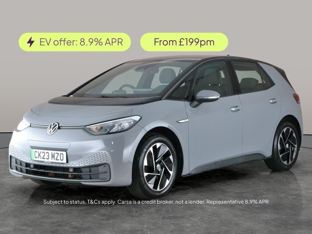 Experience the future with the sleek grey Volkswagen ID.3 hatchback. Enjoy seamless connectivity with Apple CarPlay and intuitive Sat Nav, complemented by the Car-Net App-Connect. The Assistance and Comfort Packs add extra ease, while LED headlights illuminate your journey. With Adaptive Cruise Control, paddle shift, driving modes, and digital climate control, every drive feels perfectly tailored. Manoeuvre with confidence using front and rear parking sensors. All the essentials of electric driving, with Volkswagen quality throughout. 2 services recorded, last serviced on 03/02/2026 at 16,464 miles. MOT to 04/02/2027. Visit our website for service history, online valuation, full vehicle specification plus multiple images. This vehicle is VAT qualifying. Any feature/option specified here is from 3rd party data. We cannot guarantee the accuracy of any specification supplied by a 3rd party. We recommend that you physically check the specification of the vehicle on site prior to purchase. This information does not form part of the buying contract. Terms & Conditions apply. We have over 2,000 cars available from our 10 national branches, check our website to see all our stock. Our Trustpilot rating is 4.4/5 with over 9,000 reviews.