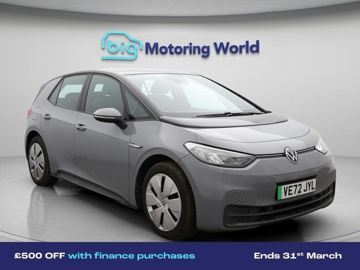 £500 towards your finance depo-Our Volkswagen ID.3 is finished in Grey. Specification includes a range of fantastic features including £500 towards your finance deposit, Comfort Pack, Adaptive Cruise Control, Lane Assist, Bluetooth, Blind Spot Assist, Parking Sensors, Cruise Control, Keyless Go, Voice Control Specification information is supplied by CAPHPI and may vary to the actual car. This data does not form any part of a buying contact. Please check specification prior to purchase in-store. The MOT is valid until February 2027, visit bigmotoringworld.co.uk for more photos, a 360 tour, service history and a free HPI report.Were BIG on peace of mind and this Grey Volkswagen ID.3 has completed our comprehensive 200 point inspection and passed all checks. Its ready for you to drive away with immediate collection in-store. We include a 90-day warranty as standard plus an option to extend for up to 3 years.Reserve this car exclusively for you, safely and securely at bigmotoringworld.co.uk, with a fully refundable £99 deposit. Test drive before you buy, with no commitment, no hassle and a completely haggle free experience. Still searching and want to see thousands more cars? We are BIG on choice with over 8000 cars to choose from.Visit our award winning web site bigmotoringworld.co.uk.Were Big Motoring World and were BIG on what matters to you.