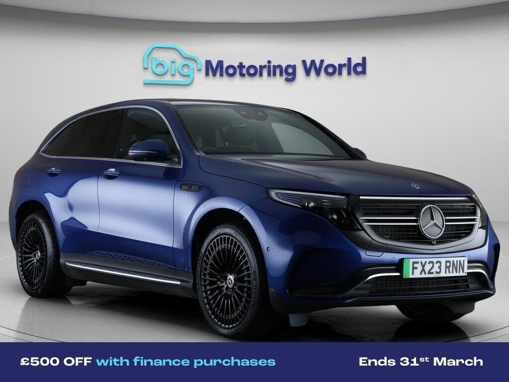 £500 towards your finance depo-Our Mercedes-Benz EQC comes with optional extras worth £715. Specification includes a range of fantastic features including £500 towards your finance deposit, Premium Plus, All Wheel Drive, Head up Display, 21'' Alloy Wheels, Leather Seats, Air Suspension, Apple CarPlay, AMG body styling, Running Boards Specification information is supplied by CAPHPI and may vary to the actual car. This data does not form any part of a buying contact. Please check specification prior to purchase in-store. The MOT is valid until February 2027, visit bigmotoringworld.co.uk for more photos, a 360 tour, service history and a free HPI report.Were BIG on peace of mind and this Blue Mercedes-Benz EQC has completed our comprehensive 200 point inspection and passed all checks. Its ready for you to drive away with immediate collection in-store. We include a 90-day warranty as standard plus an option to extend for up to 3 years.Reserve this car exclusively for you, safely and securely at bigmotoringworld.co.uk, with a fully refundable £99 deposit. Test drive before you buy, with no commitment, no hassle and a completely haggle free experience. Still searching and want to see thousands more cars? We are BIG on choice with over 8000 cars to choose from.Visit our award winning web site bigmotoringworld.co.uk.Were Big Motoring World and were BIG on what matters to you.