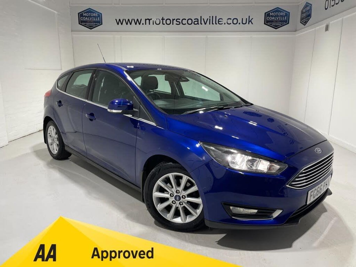 2016 66 Reg Ford Focus 1.0 EcoBoost (125PS) 6 spd TITANIUM 5dr. Deep Impact Blue, Ebony cloth interior, alloy wheels, SYNC2 TOUCHSCREEN SATELLITE NAVIGATION, Bluetooth USB, REAR PARKING SENSORS, DEATC AIR CON, auto lights, auto wipers, front and rear electric windows, electrically operated, heated and power folding mirrors, hill start, trip computer, ESP, front fog lights, heated front screen, 58,575 miles (FG 66 PXV).