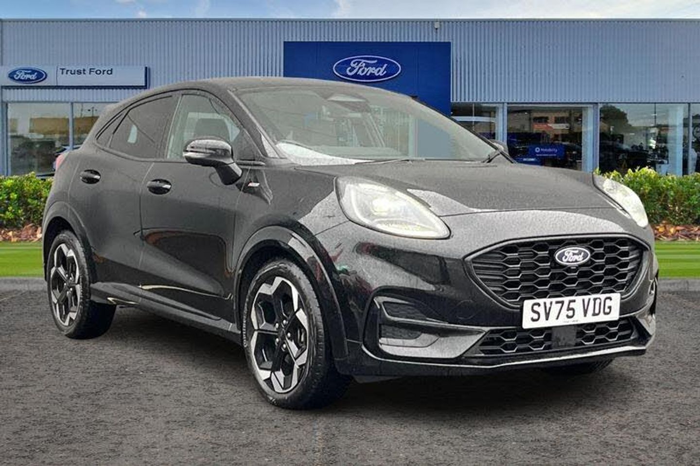 Driver impairment monitor, Emergency call service, Ford easy fuel, Full digital 12.8 instrument cluster, Lane keeping aid with lane departure warning, Power assist steering, Selectable drive modes(Normal, Eco, Sport, Slippery and Trail), Speed sign recognition, Automatic headlights with rain sensing wipers and auto high beam, Front fog lamps, LED daytime running lights, LED rear lamps, LED third brake light, Power foldable heated door mirrors with puddle lamps and puma logo protection, Quickclear heated windscreen, Rear privacy glass, Rear side wing doors, Rear wiper, ST-Line X body styling kit, 3 seat bench in 2nd row, 4 way lumbar support for passenger seat, Centre console with armrest and stowage, Electronic automatic temperature control (EATC), Ford megabox extended bootspace, Front and rear head restraints, Front floor mats, Manual 4 way driver seat adjust with lumbar adjustment, Single front passenger seat, ST-Line X Premium synthetic leather upholstery, 3 rear seatbelts, Child safety lock, Electronic stability control (ESC) and hill start assist, Pre-collision assist with autonomous emergency braking, pedestrian/cyclist detection & post-collision braking, Tyre pressure monitoring system (TPMS)