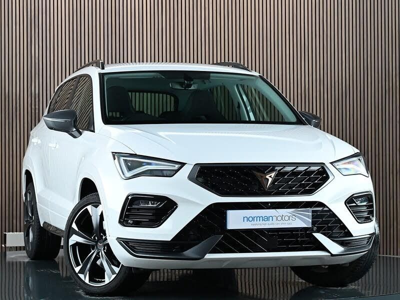 Introducing this fantastic CUPRA Ateca 1.5 EcoTSI V1 SUV 5dr Petrol DSG which is equipped with Heated Steering Wheel & Apple CarPlay. Only 1 owner from new with Full SEAT Service History (last serviced 24/11/2025 @ 20,270 miles). Presented here in Nevada White with Black Dinamica Upholstery. Upgrades and features include: 19" Sport Machined Black/Silver Alloy Wheels, Apple CarPlay, Android Auto, Heated Steering Wheel, Dark Tinted Rear Windows, Self Parking Functionality includes Front and Rear Parking Sensors, Digital Cockpit, Wireless Phone Charger, Keyless Entry, Safety and Driving Pack, Adaptive Cruise Control (ACC), Lane Assist, Traffic Sign Recognition, Leather Sports Steering Wheel, Electrically Adjustable Folding and Heated Door Mirrors, LED Headlamps with Lens and LED Fog Lamps with Cornering Function, LED Rear Taillights, Interior Lighting, Navigation System Plus, Wireless Full Link Smartphone Integration. If you have any questions regarding history, condition, or specification of this vehicle, please get in touch with a member of the sales team.