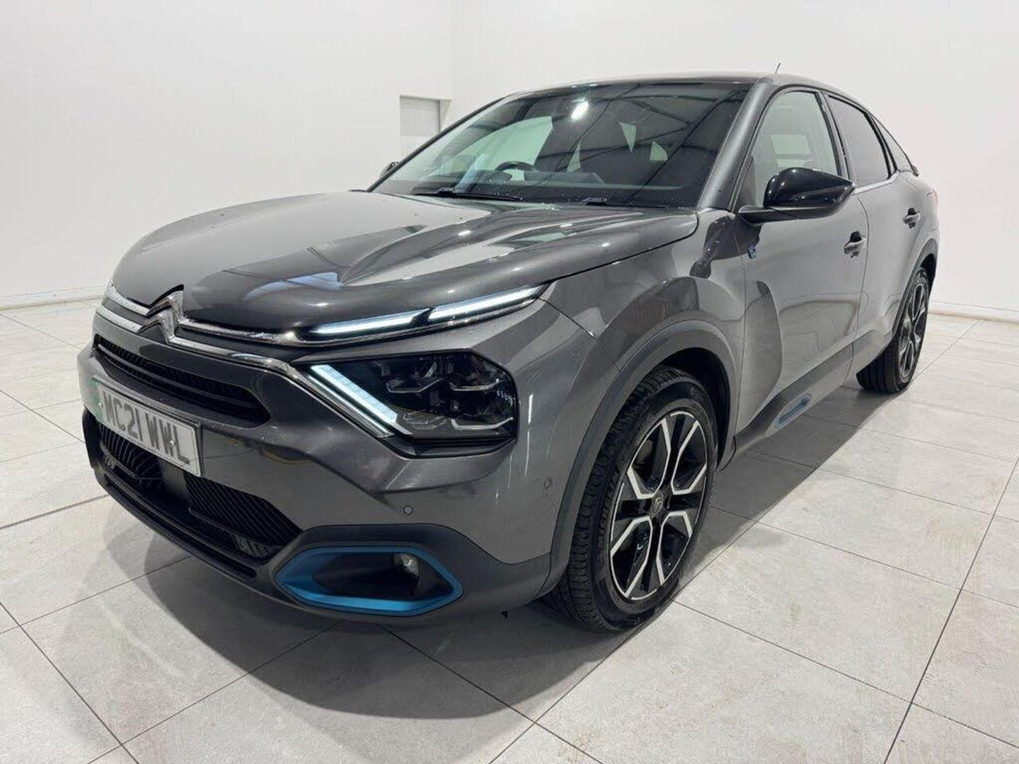10in High Resolution Touchscreen User Interface, 18in Alloy Wheels - Bi-Tone Crosslight Diamond Cut, 5.5in Backlit Full-TFT Drivers Instrument Cluster, 7.4kW Single-Phase Onboard Charger, ABS - Anti-Lock Braking System, Active Blind Spot Detection, Adaptive Cruise Control with Speed Limiter, Anodised Blue Colour Pack, Anti-Theft Alarm - Volumetric Protection, Automatic Dual Zone Air Conditioning, Automatic Headlight Activation with High Beam Assist, Boot Light, Bumpers - Body Coloured, Citroen Connect Box with Emergency and Assistance System, Citroen Connect Nav, City Smart Pad Support - Universal Tablet Cradle, Compressor with Puncture Repair Kit, Dashboard Tray in Front Cabin, Deluxe Leather Steering Wheel with Two Command Blocks, Driver and Front Passenger Airbags, Driver and Passenger Sunvisor with Illuminated Vanity Mirror, ESP - Electronic Stability Programme, Electric Parking Brake, Electric Power Steering, Electric Windows - Front and Rear, Electrically Heated and Folding Door Mirrors with Courtesy Lighting, Electrochrome Interior Rear View Mirror with Automatic Day-Night Switching, Front Seat Belt Pretensioners, Front and Rear Interior Lighting - LED, Gloss Black Rear Skirt, Head-Up Display, Heated Steering Wheel, Height Adjustable Drivers Seat with Adjustable Lumbar Support, Height Adjustable Passengers Seat, Height and Reach Adjustable Steering Wheel, High Level Acoustic Insulation Pack, Hill Start Assist, In-Crash Braking, Keyless Entry and Start, LED Daytime Running Lights in V Signature, LED Front Fog Lights with Static Cornering Function, LED Headlights, Manual Child Locks, Manual Deactivation of Front Passenger Airbag, Map Pockets on Front Seat Backs, Matt Black A-Pillar and Gloss Black B-Pillar, Mode 3 Charging Cable with Type 2 Connectors, Obsidian Black Painted External Rear View Mirrors, Parking Aid - Front and Rear and Lateral, Post Collision Safety Brake, Rain Sensing Automatic Front Windscreen Wipers, Raised Central Console with Armrest with Two Cupholders, Remote Central Locking with Deadlocking, Remote Temperature Pre-Conditioning, Row 1 - 12V Power Outlet and 1x USB Type-C Socket for Charging and Data Connection and 1x USB Type-A Socket for Charging, Row 1 Side Thorax Airbags, Row 1 and 2 Curtain Airbags, Row 2 - 1x USB Type-A Socket for Charging, Safety Pack Plus, Seatbelt Unfastened on the Move Warning, Seats Rear - Split Folding, Side Windows with Chrome Detail - Rear Window Dark Tinted, Suspension with Progressive Hydraulic Cushions - PHC, Top Rear Vision Reversing Camera, Tyre Under Inflation Indicator, Visio Park, Welcome and Goodbye Lighting
