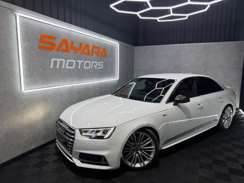 Here at Sayara motors proud to introduce the stunning Audi S4 3.0 TFSI V6.This 2017 Audi S4 3.0 TFSI V6 Tiptronic quattro, finished in crisp white, is an exceptional example that perfectly blends luxury, performance and carefully selected upgrades. From the factory this car is extremely well specified, featuring heated red leather interior with massage seats, the carbon fibre interior pack, two-tone ambient lighting, Audi Virtual Cockpit, Matrix LED headlights, adaptive cruise control, Bang & Olufsen sound system, reverse camera and front & rear parking sensors, along with factory wheel dynamic centre caps that add a subtle performance touch.This example has also been tastefully enhanced with a comprehensive list of premium performance and aesthetic upgrades. Performance modifications include an Integrated Engineering high flow downpipe paired with a Scorpion cat-back exhaust and finished with Remus carbon fibre tips, Integrated Engineering carbon fibre induction kit and turbo inlet, FDS intercooler, GFB uprated diverter valve, RacingLine oil catch can, and 034 Motorsport cold air duct. Handling and chassis upgrades include 034 Motorsport lowering springs, transmission mount and uprated red coil packs, along with a RacingLine front strut brace for added rigidity. Braking has been significantly improved with 034 Motorsport two-piece floating brake discs front and rear, newly fitted Ferodo DS500 front pads, Tarox rear pads and RacingLine high performance brake fluid.Visually and inside the car continues to impress with a Diversion Automotive carbon fibre steering wheel, carbon fibre rear diffuser, carbon fibre engine cover, ECS carbon fibre ECU cover, 034 Motorsport carbon fibre radiator cover and RacingLine fuel and oil cap.Service And Maintenance:- Full Service history present - Recent oil and filter replacement - Fresh MOT Key Information:- HPI Clear- 6 Months Warranty- 6 Months Breakdown Recovery- Part exchange availableAll of our vehicles are put through a Pre-Delivery Inspection which includes a fresh service and clean M.O.T.-10k+ UPGRADES|FUL CARBON|STG 2