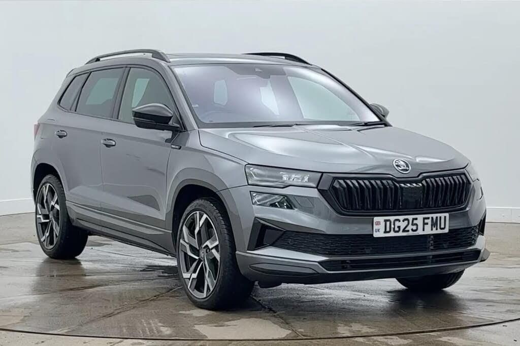 This 2025 Skoda Karoq TSI SportLine Edition presents an exceptional opportunity with its remarkably low mileage of just 5656 miles, a testament to its single owner history. This Euro 6 compliant, four wheel drive model is powered by a responsive 2.0 litre petrol engine, offering an engaging driving experience. As a Skoda manufacturer approved vehicle, it comes with the assurance of quality and care. The SportLine Edition trim boasts a wealth of desirable features, including a 3 spoke leather sports heated multi-function steering wheel with DSG paddles, and the convenience of Adaptive Cruise Control. For added comfort and enjoyment, it features a Winter Package Plus and a Winter Pack, both including heated seats, and a fixed panoramic glass roof that floods the cabin with natural light. The performance of this Karoq is a clear highlight, with an impressive 0-60mph acceleration time of just 6.8 seconds, demonstrating its dynamic capability. This acceleration figure indicates a superior performance compared to many other vehicles in its class. Furthermore, the generous boot space offers practicality for everyday life and longer journeys, making it a versatile choice. The combination of its low mileage, single owner provenance, impressive acceleration, and ample storage space sets this Skoda Karoq apart, offering a compelling package for discerning buyers.