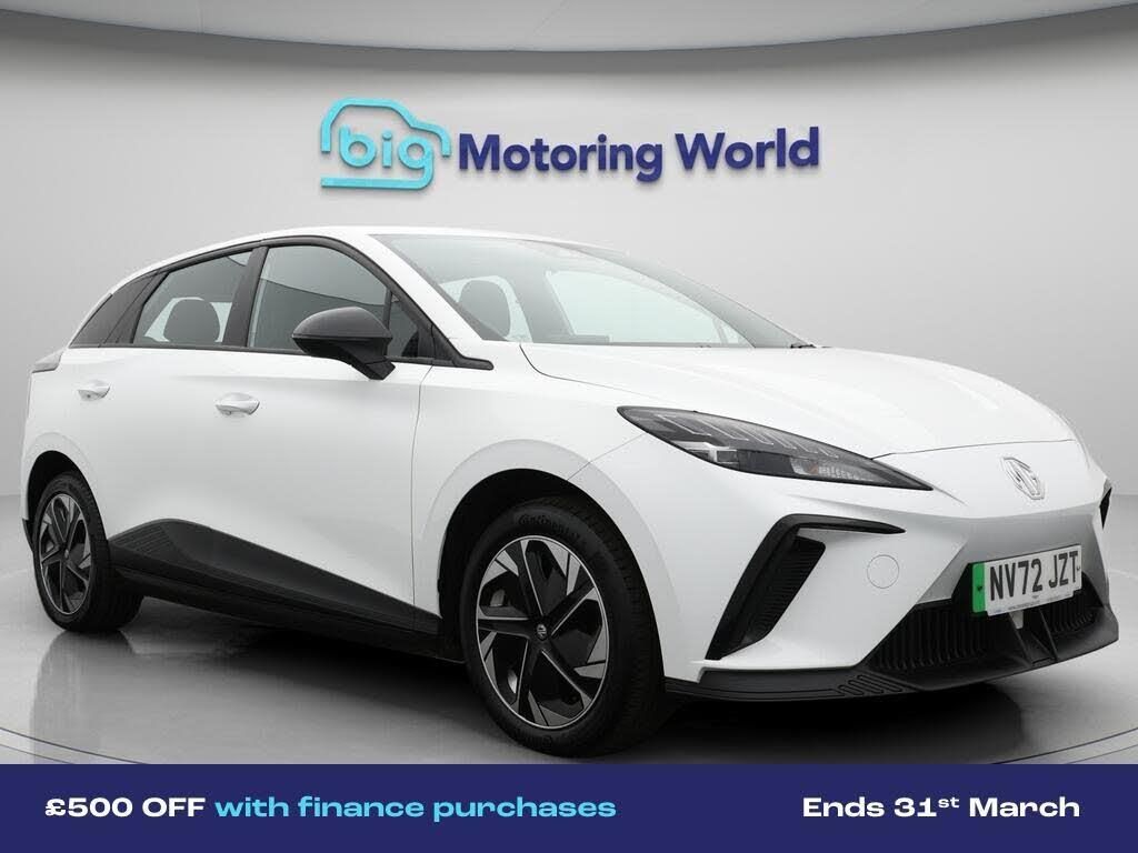 £500 towards your finance depo-Our MG MG4 is finished in White. Specification includes a range of fantastic features including £500 towards your finance deposit, 17'' Alloy Wheels, Adaptive Cruise Control, Lane Assist, Bluetooth, Parking Sensors, 2 Zone Climate, Cruise Control, Climate Control, Voice Control Specification information is supplied by CAPHPI and may vary to the actual car. This data does not form any part of a buying contact. Please check specification prior to purchase in-store. The MOT is valid until January 2027, visit bigmotoringworld.co.uk for more photos, a 360 tour, service history and a free HPI report.Were BIG on peace of mind and this White MG MG4 has completed our comprehensive 200 point inspection and passed all checks. Its ready for you to drive away with immediate collection in-store. We include a 90-day warranty as standard plus an option to extend for up to 3 years.Reserve this car exclusively for you, safely and securely at bigmotoringworld.co.uk, with a fully refundable £99 deposit. Test drive before you buy, with no commitment, no hassle and a completely haggle free experience. Still searching and want to see thousands more cars? We are BIG on choice with over 8000 cars to choose from.Visit our award winning web site bigmotoringworld.co.uk.Were Big Motoring World and were BIG on what matters to you.