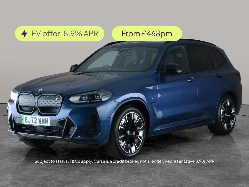 Experience the BMW iX3 M Sport Pro, packed with luxury, tech, and comfort. Enjoy open-sky drives with the panoramic roof, while the Harman/Kardon sound system fills the cabin with rich audio. Effortlessly access your car using keyless entry and take the stress out of parking with Parking Assistant Plus, surround view and a reversing camera. Stay connected with Apple CarPlay, and enjoy premium features like gesture control, a head-up display and crisp LED headlights for a sophisticated electric SUV experience. 2 services recorded, last serviced on 18/12/2025 at 29,966 miles. MOT to 21/12/2026. Visit our website for service history, online valuation, full vehicle specification plus multiple images. Certain features listed may be available via subscription packages at extra costs, please consult with BMW for details. This vehicle is VAT qualifying. Any feature/option specified here is from 3rd party data. We cannot guarantee the accuracy of any specification supplied by a 3rd party. We recommend that you physically check the specification of the vehicle on site prior to purchase. This information does not form part of the buying contract. Terms & Conditions apply. We have over 2,000 cars available from our 10 national branches, check our website to see all our stock. Our Trustpilot rating is 4.4/5 with over 9,000 reviews.