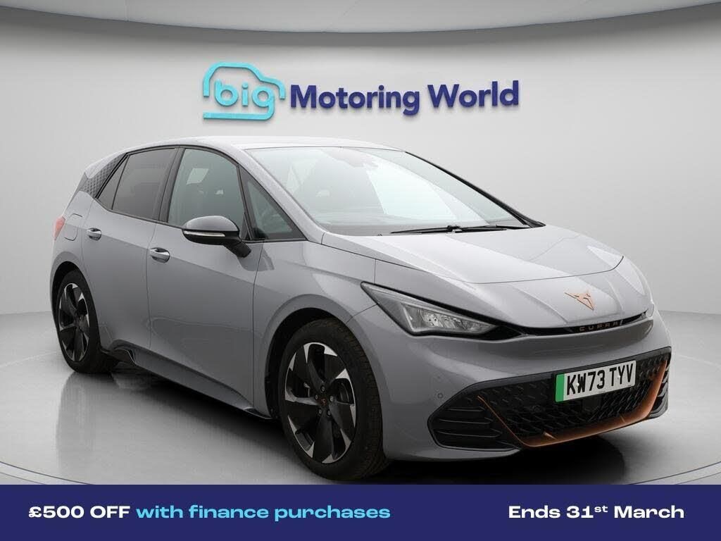 £500 towards your finance depo-Our CUPRA Born is finished in Grey. Specification includes a range of fantastic features including £500 towards your finance deposit, Head up Display, 19'' Alloy wheels, Digital Cockpit, Lane Assist, Heated Seats, Ambient Lighting, 2 Zone Climate, Climate Control, Keyless Go Specification information is supplied by CAPHPI and may vary to the actual car. This data does not form any part of a buying contact. Please check specification prior to purchase in-store. The MOT is valid until December 2026, visit bigmotoringworld.co.uk for more photos, a 360 tour, service history and a free HPI report.Were BIG on peace of mind and this Grey CUPRA Born has completed our comprehensive 200 point inspection and passed all checks. Its ready for you to drive away with immediate collection in-store. We include a 90-day warranty as standard plus an option to extend for up to 3 years.Reserve this car exclusively for you, safely and securely at bigmotoringworld.co.uk, with a fully refundable £99 deposit. Test drive before you buy, with no commitment, no hassle and a completely haggle free experience. Still searching and want to see thousands more cars? We are BIG on choice with over 8000 cars to choose from.Visit our award winning web site bigmotoringworld.co.uk.Were Big Motoring World and were BIG on what matters to you.
