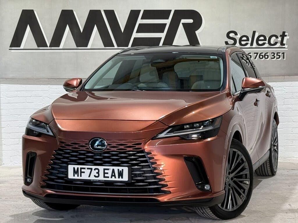 A beautiful one-owner RX450h+ with just 26,000 miles, full Lexus main dealer service history and Lexus warranty until 16th November 2026. Top of the line Takumi model in Sonic Copper metallic with Ammonite Sand semi-aniline leather trim, Dark Bamboo inlays and a huge specification including keyless entry and ignition, electric opening panoramic glass pan roof with sliding sun blind, Mark Levinson surround sound system with DAB radio, customisable head-up display, heated steering wheel in wood and leather with electrically adjustable steering column, heated and cooled electric front seats with adjustable lumbar support and triple memory, 3-zone digital climate control, electric reclining and folding rear seats which are also heated and cooled, Bluetooth and smartphone integration via Apple CarPlay and Android Auto, wireless phone charging in the centre console, loads of charging points for devices with 5x USB C inputs as well as USB B and even a 3-pin socket in the rear, configurable 64-colour ambient lighting, massive touch screen with satellite navigation and "Hey Lexus" Voice Assistant voice controls, individual rear window blinds, 360-degree parking sensors and surround camera system with Advanced Park automated parking to help you in and out of tricky spaces, power folding electric mirrors, automatic headlights, electric powered tailgate, customisable Drive Mode system and Proactive Driving Assist with a whole suite of driving aids including pre-collision system, lane change assist, front and rear cross traffic alert, lane departure alert, road sign assist, blind spot monitors, safe exit assist and more. Very eye-catching in Sonic Copper with dark privacy glass and Takumi grey 21 inch alloy wheels. Outstanding condition inside and out, it even has the protective plastic from when it was delivered new from the Lexus factory still intact on the rear central armrest cupholder cover. Supplied with two charging cables in Lexus storage bag for charging on both standard 3-pin electrical sockets and dedicated charging stations, complete book pack in Lexus leather wallet, two keys, full Lexus service history and Lexus extended warranty until mid-November. Amver Select are proud to have been awarded Auto Trader's Highly Rated status for 2025, an honour that we have received every year since its introduction in 2018. In our current premises for nearly two decades, we are conveniently located between Glasgow and Edinburgh and are open from 10:00am to 6:00pm Monday to Friday. We have committed to AA Cars Standards, basically the AA's Commandments of Gold Standard customer service. All cars are provided with a minimum 6 months MOT, 12 months AA basic breakdown cover and other exclusive AA member benefits. Finance available, subject to approval. Part-exchange welcome.