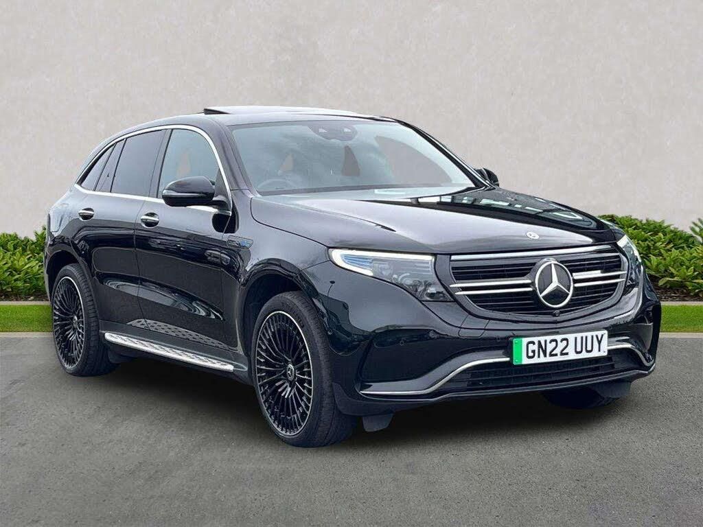 MULTIBEAM LED Headlights, Mercedes Me Charge (3 Year Subscription From New), Blind Spot Assist, 12v Socket in Load Area, AMG-Specific Front Apron in a Jet-Wing Design, Hard-Disk Navigation, Heat and Noise Insulating Acoustic Glass, Dynamic Select, Active Brake Assist, MBUX Interior Assistant, Electric Windows - Front and Rear, Floor Mats - AMG, Smartphone Integration, Wireless Smartphone Charging, Head-Up Display, IONITY 1 Year, CCS-2 Connector - Combined Charging System - Compatible with AC and DC, Privacy Glass, URBAN GUARD Vehicle Protection, MBUX Multimedia System with Widescreen Cockpit - 2x 10.25in Displays with Touchpad, 110kW DC On-board Charger, Vehicle Set-Up and Vehicle Monitoring - 3 Years, Multifunction Sports Steering Wheel in Nappa Leather with Control Panel - Flattened Bottom Section and Perforated Grip Area, Cruise Control, TIREFIT, Airbags - Driver and Front Passenger, Trim - Black Open-Pore Ash Wood with High Gloss Centre Console, Interior Lighting Package, ABS - Anti-lock Braking System, Energizing Package, Mercedes-Benz Emergency Call System, Electric Sliding Sunroof, Door Mirrors - High Gloss Black, Seats - AMG Sports in Leather, EASY-PACK Electric Tailgate, EQ Navigation Services, Parking Package with Parking Assist PARKTRONIC and 360 Camera, Seats - Rear Split Folding 40-20-40, Active Lane Departure Warning, Charging Cable for Wallbox and Public Charging Stations - Type 2 Mode 3 - 5m, Roof Lining - Black Fabric, Summer Tyres, AMG Brushed Stainless Steel Sports Pedals with Black Rubber Studs, Aluminium - Running Boards, Stowage Package, Dashboard in ARTICO, KEYLESS-GO Comfort Package, Digital Radio, Badge on the Wing in High-Gloss Black with Chrome Stripes and Blue EQC Lettering, AMG-Specific Black Panel Radiator Grille in a Twin-Blade Design and Surround in High-Gloss Black, AMG-Specifc Rear Apron with Visible Air Outlets, 11kW On-Board Charger, Mirror Package, Traffic Sign Assist, 21in Alloy Wheels - AMG Multi-Spoke Design - Black, Mercedes Me Connect, Heated Front Seats, Ambient Lighting, Power Assisted Steering, Live Traffic Information, Memory Package, MBUX - Mercedes-Benz User Experience - Infotainment System