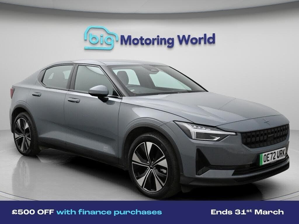 £500 towards your finance depo-Our Polestar Polestar 2 is finished in Grey. Specification includes a range of fantastic features including £500 towards your finance deposit, Dynamic Chassis Control, Electric Seats, Heated Seats, Rear View Camera, Internet, Bluetooth, Adaptive LED Headlights, 2 Zone Climate, Cruise Control Specification information is supplied by CAPHPI and may vary to the actual car. This data does not form any part of a buying contact. Please check specification prior to purchase in-store. The MOT is valid until February 2027, visit bigmotoringworld.co.uk for more photos, a 360 tour, service history and a free HPI report.Were BIG on peace of mind and this Grey Polestar Polestar 2 has completed our comprehensive 200 point inspection and passed all checks. Its ready for you to drive away with immediate collection in-store. We include a 90-day warranty as standard plus an option to extend for up to 3 years.Reserve this car exclusively for you, safely and securely at bigmotoringworld.co.uk, with a fully refundable £99 deposit. Test drive before you buy, with no commitment, no hassle and a completely haggle free experience. Still searching and want to see thousands more cars? We are BIG on choice with over 8000 cars to choose from.Visit our award winning web site bigmotoringworld.co.uk.Were Big Motoring World and were BIG on what matters to you.