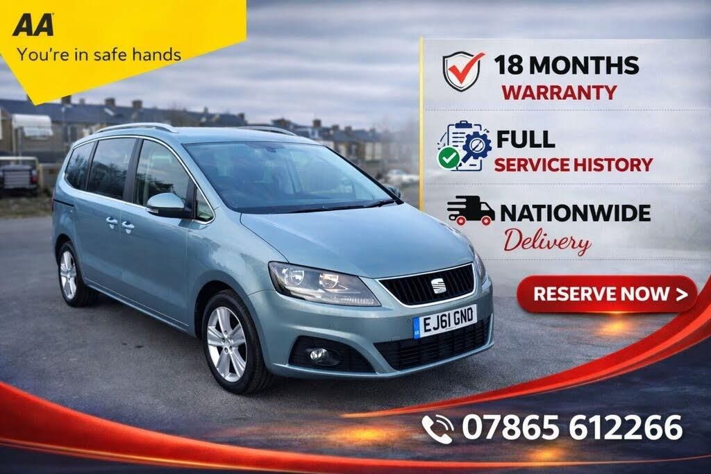 With a full service history and a clear vehicle history check, this 2011 SEAT Alhambra TDI SE offers excellent provenance. This 7 seat MPV is powered by a 2.0 litre diesel engine and boasts a towing weight of 2200 kg. For your peace of mind, it comes with an 18 month warranty and 12 months MOT provided on purchase, with the last service completed on 2026-03-09. Notable features include Three Zone Climate Control, front and rear parking sensors for easier manoeuvring, and Bluetooth audio streaming for your entertainment. The headlights automatically turn on thanks to a light sensor, adding to the convenience.The SEAT Alhambra TDI SE accelerates from 0 to 62mph in a brisk 9.5 seconds, demonstrating its strong performance. This acceleration figure indicates that this Alhambra offers a more responsive driving experience compared to many other vehicles in its class. The combination of its spacious interior, practical features, and capable engine makes this Alhambra a well rounded choice for families and those needing versatile transport.-FSH, timing belt,7 seater-Fix your deal on phone, reserve it or get it delivered.