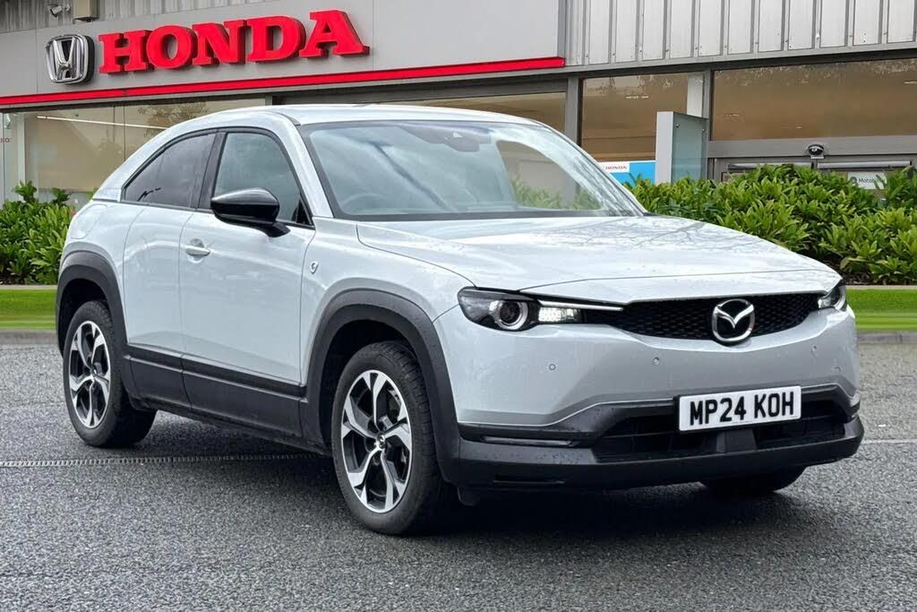 12V Electrical Power Outlet,18in Alloy Wheels - Black - Diamond Cut,ABS - Anti Lock Braking System,Adaptive Cruise Control,Air Conditioning - Climate Control,Airbags - Driver Central,Airbags - Front Driver Knee,Airbags - Front Dual Stage Driver and Single Stage Front Passenger,Airbags - Front Passenger Cut-off Switch,Airbags - Front Side,Airbags - Front and Rear Curtain Airbags,Apple CarPlay and Android Auto,B-Pillar and C-Pillar Garnish - Piano Black,Blind Spot Monitoring with Rear Cross Traffic Alert,Chrome Glove Box Handle,Chrome Start Button,Coming Home-Leaving Home Lights,DC Socket for Rapid Charging up to 50KW,DSC - Dynamic Stability Control,Door Mirrors - Black - Electrically-Adjustable - Heated - Auto Power Folding with Auto-dimming Drivers Mirror and Adjustable Memory with Tilt-down Function when in Reverse,Door Panel Trim in Cloth with Vinyl Leather Armrest and Cork Inserts Around Innter Door Handle,Driver Attention Alert - DAA,Drivers Seat Power Slide - Recline - Height - Tilt and Lumbar Adjustment with Head-up Display and Driver Door Memory,Dusk-Sensing Lights,Electric Windows - Front,Electronic Parking Brake with Auto Hold Function and Auto-Disengage Function,Emergency Lane Keeping with Blind Spot Assist,Emergency Lane Keeping with Road Keep Assist,Emergency Stop Signalling System - ESS,Emergency Tyre Repair Kit,Frameless Auto Dimming Rear-View Mirror,Front Passenger Seat - Manual Slide - Recline - Height Adjustment,Gear Shift - Leather-Wrapped,Glovebox with Interior Illumination,Grab Handles - Driver - Front Passenger and Two Rear with Coat Hooks,Head-Up Display,Headlights - LED with Auto Headlight Levelling,High Beam Control,Hill Hold Assist,ISOFIX Child Seat Anchorage for Outer Rear Seats,Instrument Panel 7in TFT Colour Driver Display,Integrated Bluetooth,Intelligent Speed Assist,Interior Lighting,LED Rear Combination Lights,Lane Keep Assist with Lane Departure Warning System,Luggage Compartment - LED Illumination,Mazda Connect with 8.8in TFT Colour Centre Display,Mazda Connected Services,Mazda Heritage Cork Console Tray and Cupholder Lids,Mazda Navigation System,Multimedia Commander including Separate Volume Dial,Parking Sensors - Front and Rear with Audible and Visual Warning,Power Start-Stop Button,Power Steering,Pre-Crash Safety - Smart Brake Support - SBS,Privacy Glass - Rear and Rear Side Windows,Radiator Grille - Black,Rain-Sensing Front Wipers,Rear Roof Spoiler - Gloss Black,Rear Seats - 60-40 Split Fold Down,Rear Seats - Folding Centre Armrest Equipped with Two Cup Holders,Rear Wiper,Remote Central Locking with Deadlocking and Automatic Door Lock when Driving,Reversing Camera,Roof Mounted Sunglasses Holder,Seatback Pocket - Located on Rear of Front Passenger Seat,Seatbelt Reminder Audible Warning,Seatbelts - Front - 3-Point - ELR - x2 with Pre-Tensioners,Seatbelts - Rear - 3-Point - ELR - x3,Seats - Front Heated,Smart Keyless Entry,Steering Wheel - Leather Wrapped,Steering Wheel - Paddle Shift,Steering Wheel - Tilt and Telescopic Adjustment,Steering Wheel Chrome Centre Bezel,Steering Wheel Mounted Audio and Bluetooth Controls,Storage Spaces - Door Pockets,Storage Spaces - Front Centre Storage with Two Cupholders,Sun Visors - Drivers and Front Passengers with Covered Vanity Mirror,TCS - Traction Control System,Thatcham Accredited Alarm and Immobiliser,Three Height Adjustable Rear Head Restraints,Traffic Sign Recognition,Trip Computer,Type 2 Mode 2 AC Charging Via 3-Point Plug,Type 2 for Mode 3 AC Charging Via Home or Public Charge Points,Tyre Pressure Monitoring System,USB Input,e G-Vectoring Control Plus - eGVC Plus,e-Call with GPS