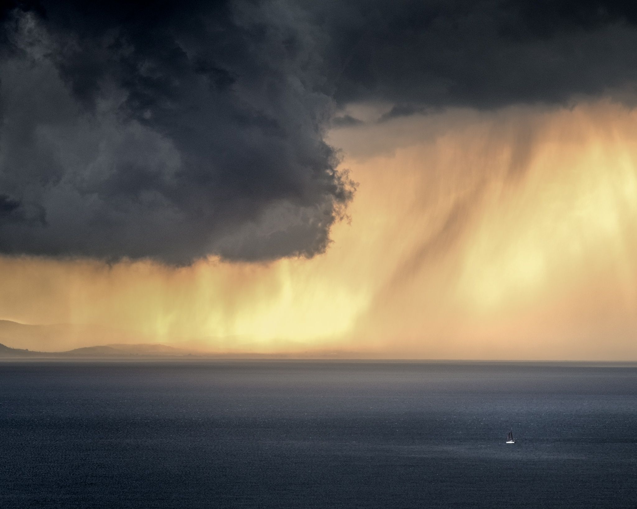 Taken overlooking the Bay of Messinia in Greece. This huge squall moved in creating cloud shapes I've not seen outside of apocalypse movies. Cherry on top was the sailing yacht in the middle of the bay, it had been trying to outrun the storm but by the time I took the image it had battened down hatches. Colours are straight out of camera, only a touch of contrast was applied.