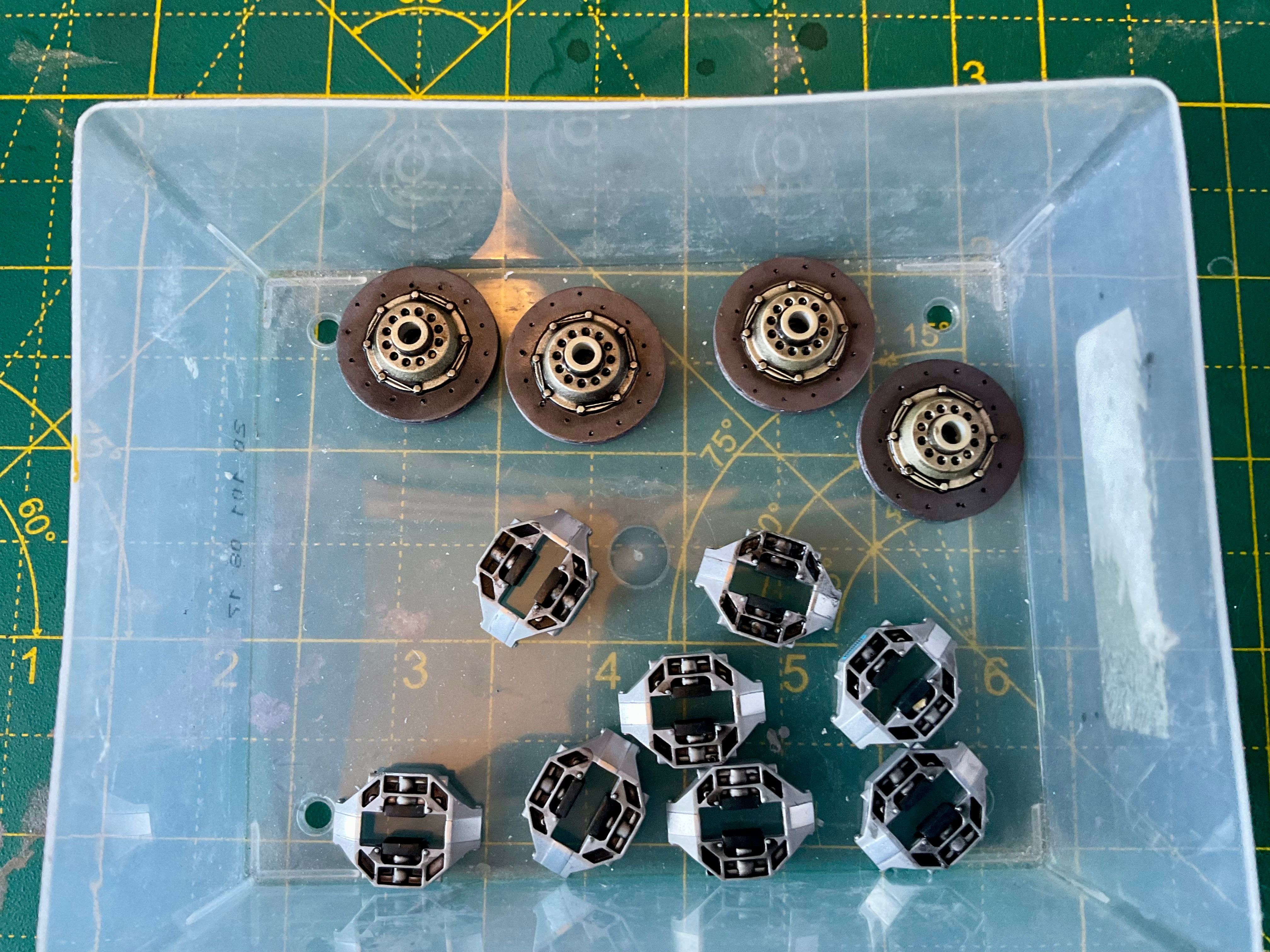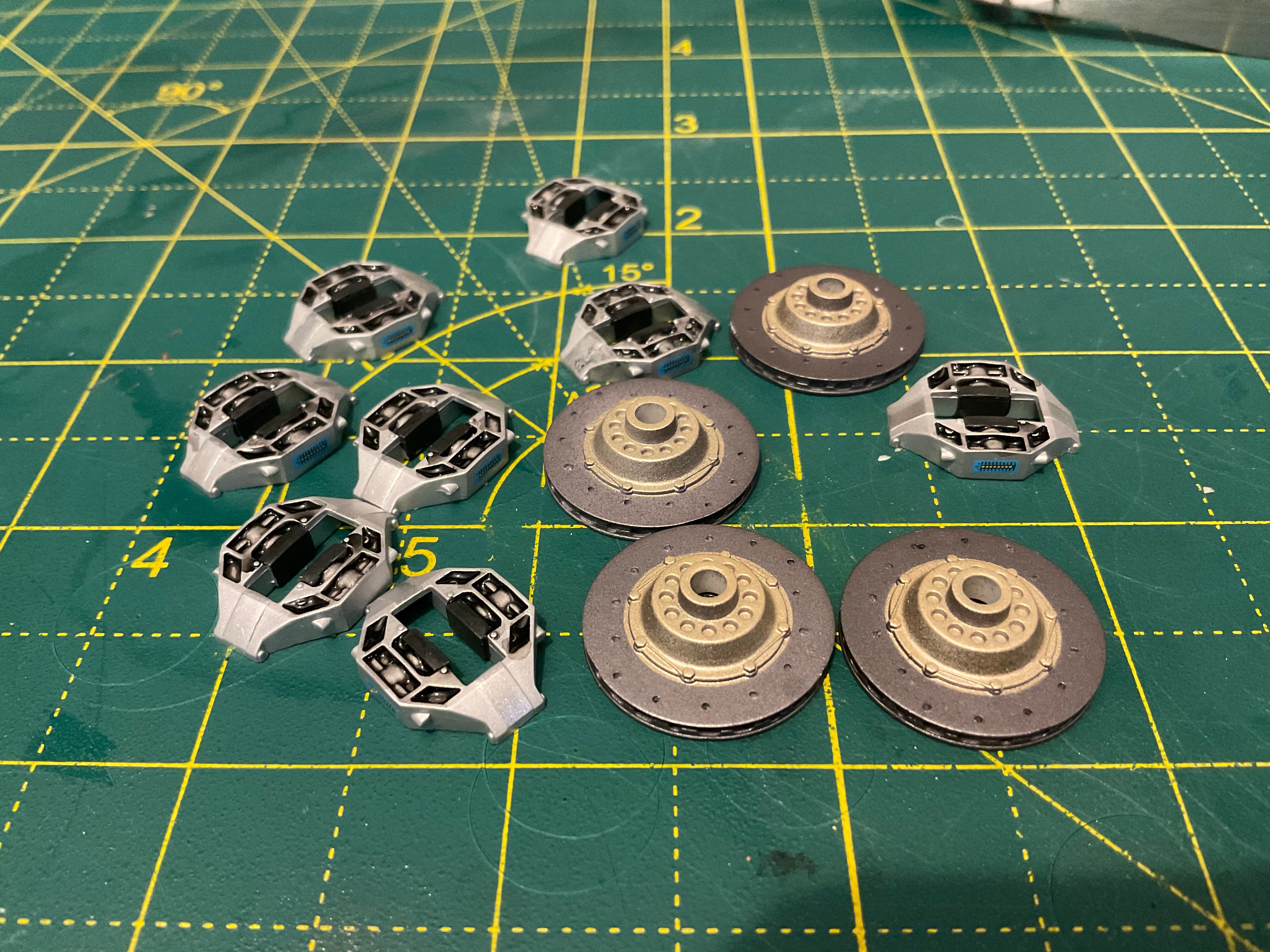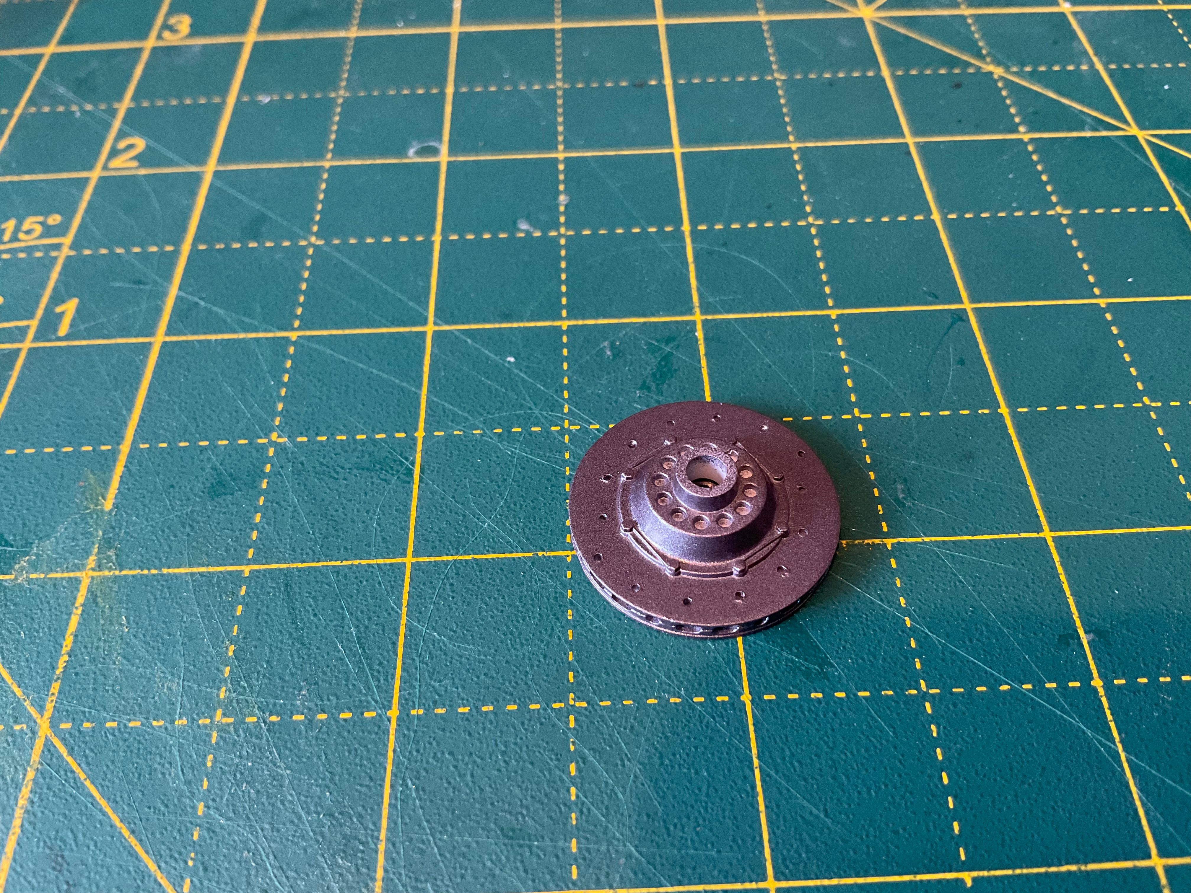 I added a panel line wash to the disks before work this morning.