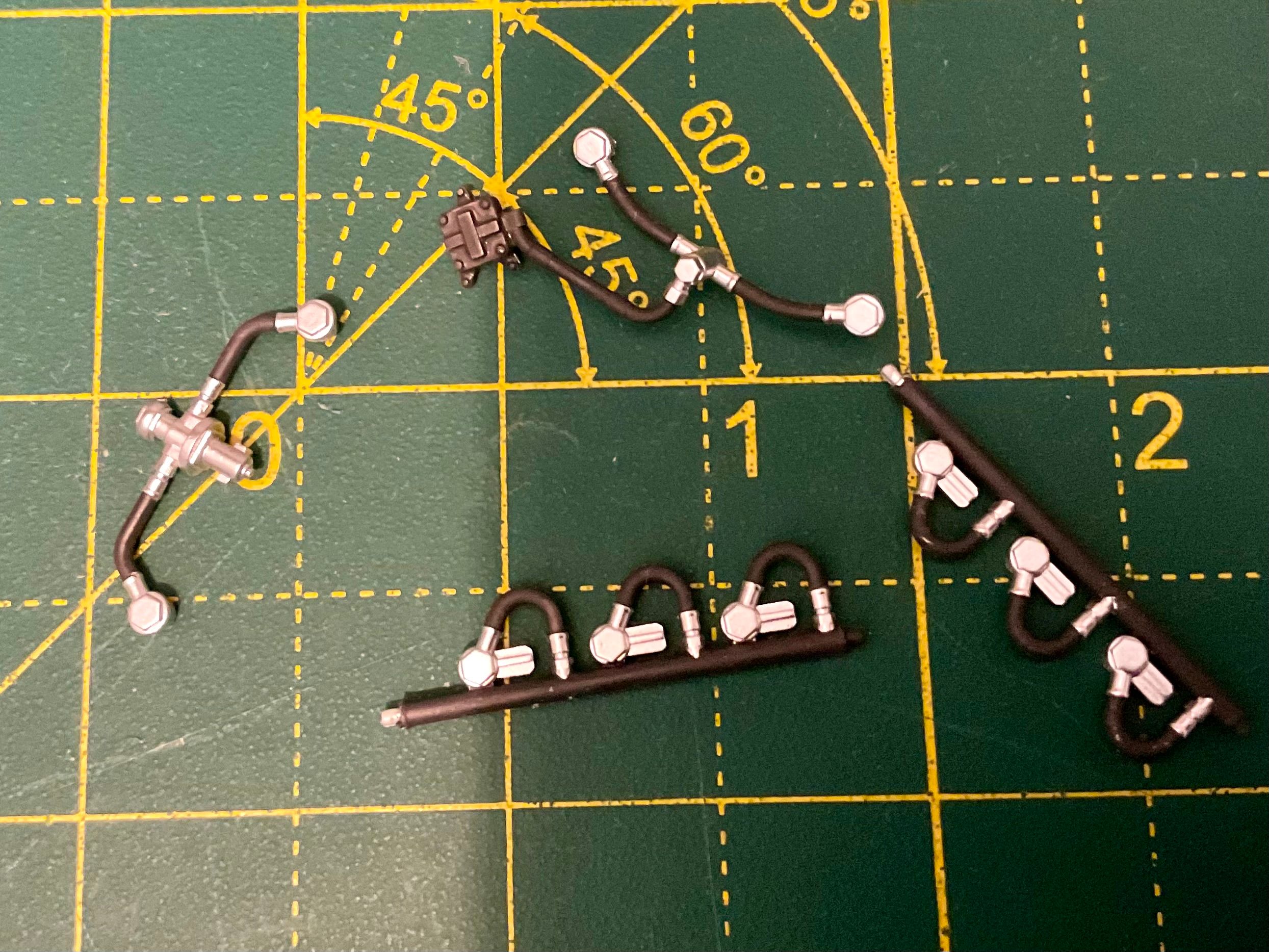 Very nice. On the MP4/6 cam covers I used bare metal foil on the lettering, then sprayed semi gloss black, then removed the paint on the letters with thinners and polished up. It gave a real brushed metal finish and looks pretty good at 1:12 scale.