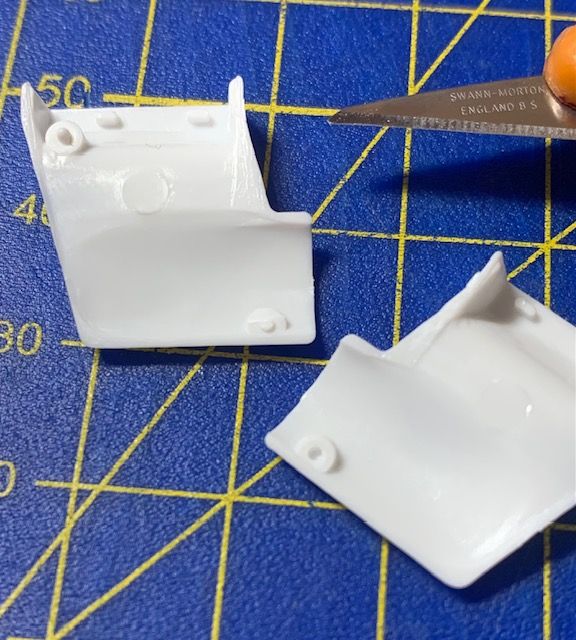 Also drilled them for vales (the front on has fallen over a bit). Here's a comparison with the kit originals: