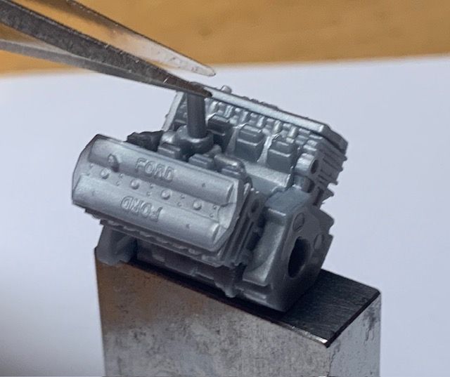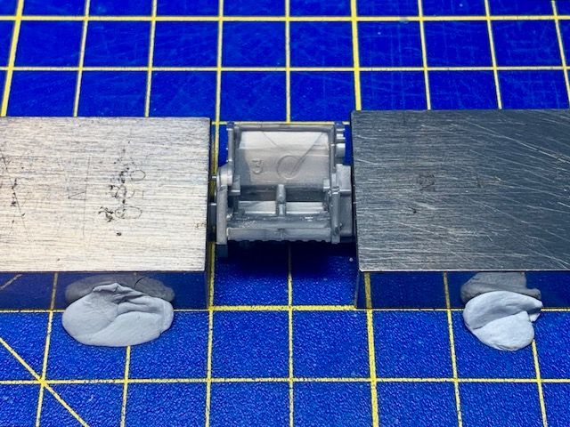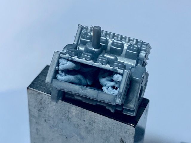 Then moved back to the engine and used some gauge blocks to align everything beofer applying more liquid cement. I can predict that if the front and rear engine faces are even a degree or so out, it will result in a bent car: