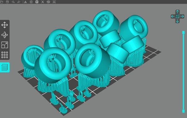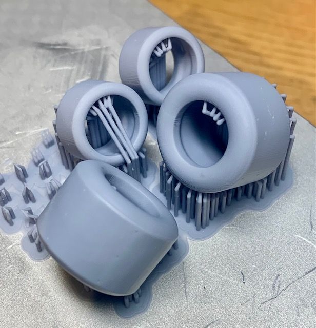 I modelled some new tyres with a more realistic profile and some wear grooves. This is the file ready for slicing (with some Viggen rear view mirrors on the plate too for good measure):